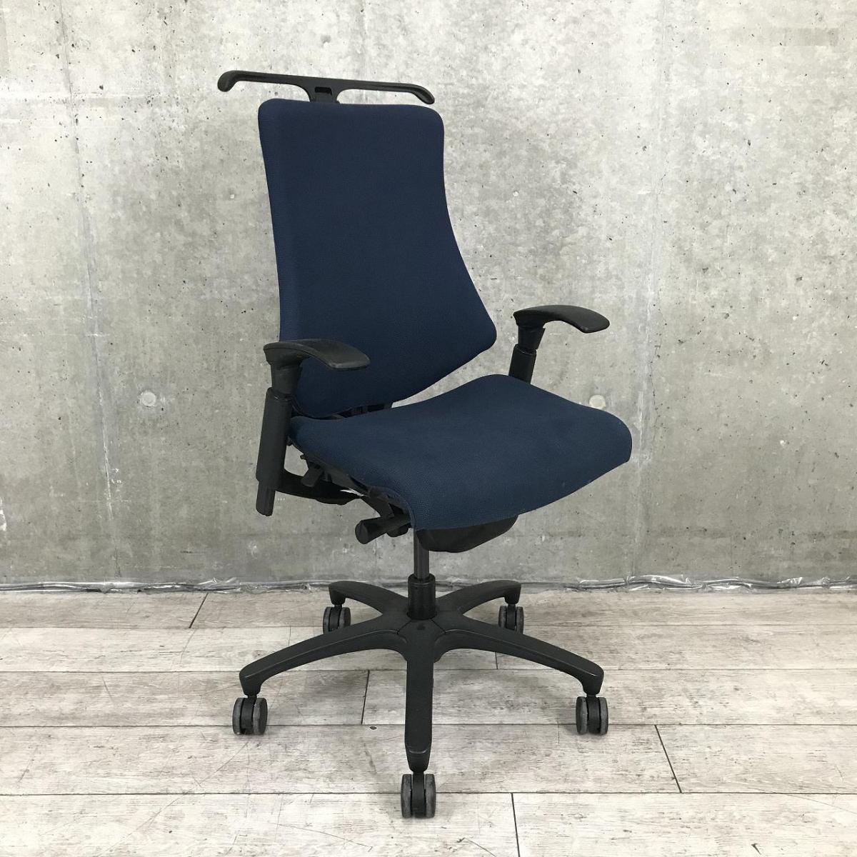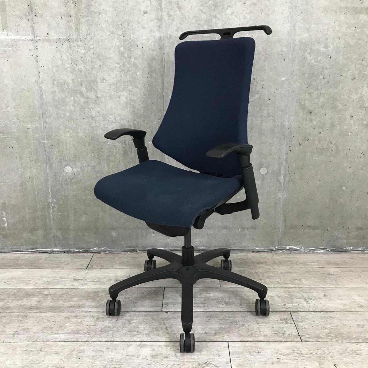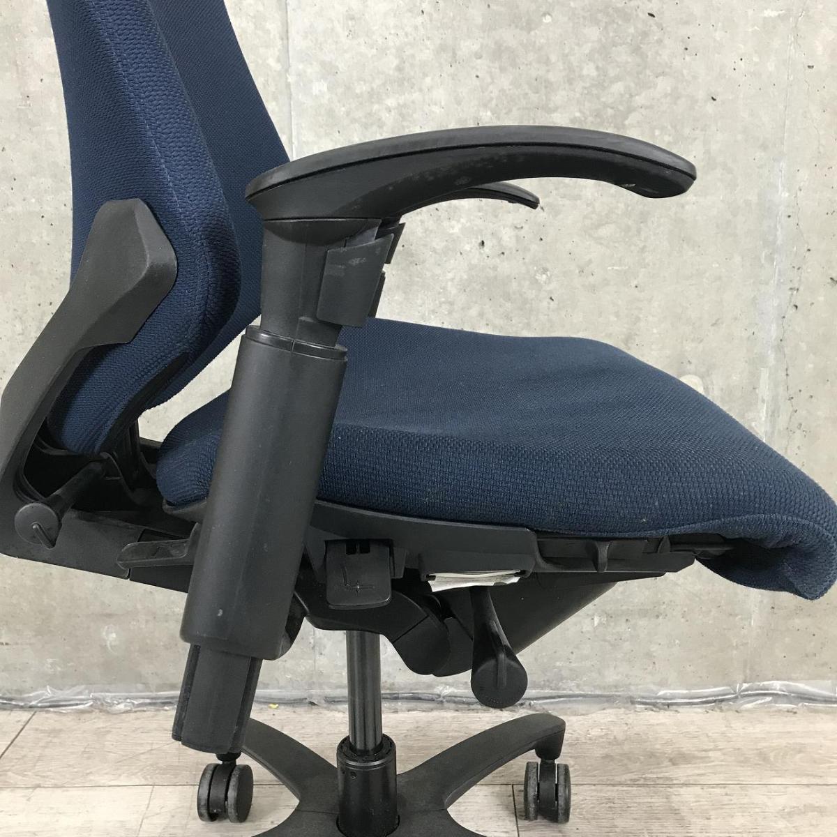 【包み込まれるフィット感!】 ■イトーキ製 エフチェア 肘付 ネイビーブルー ■デスクワークの疲労を軽減!