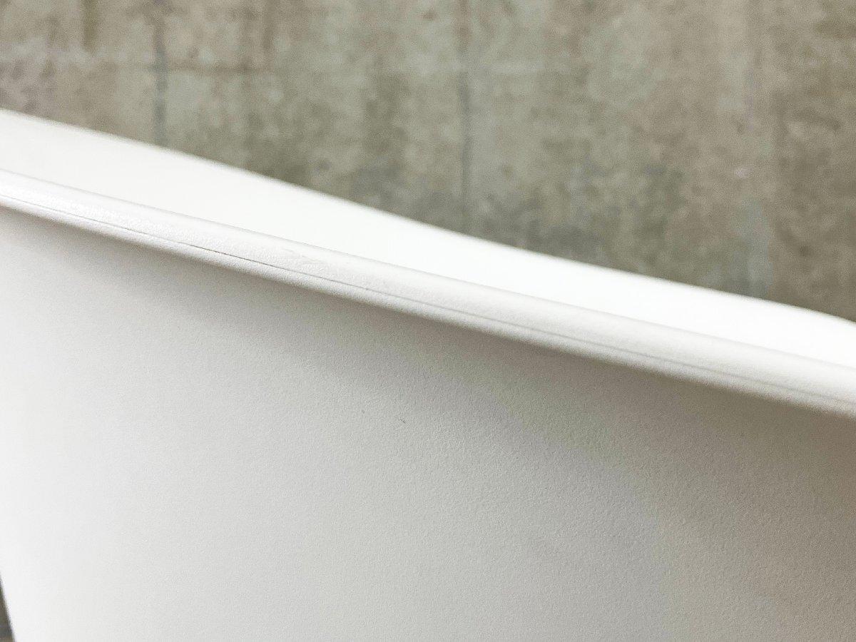 - かなり強い濃い黄ばみ・変色が商品全体にある。(例、座面・背もたれ、脚部等にある。)