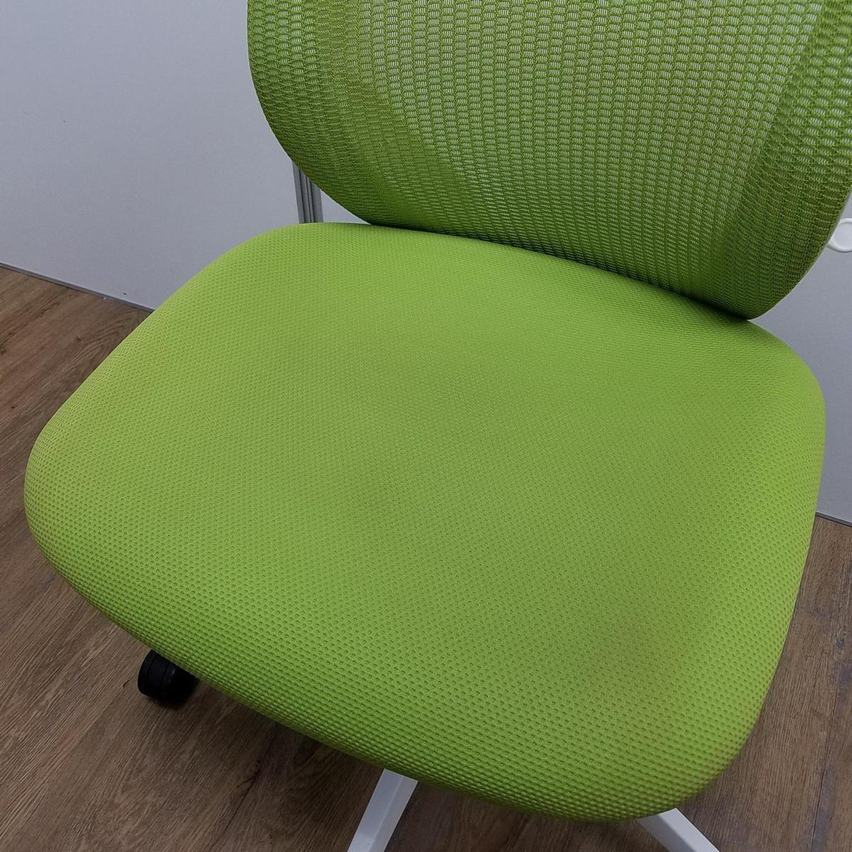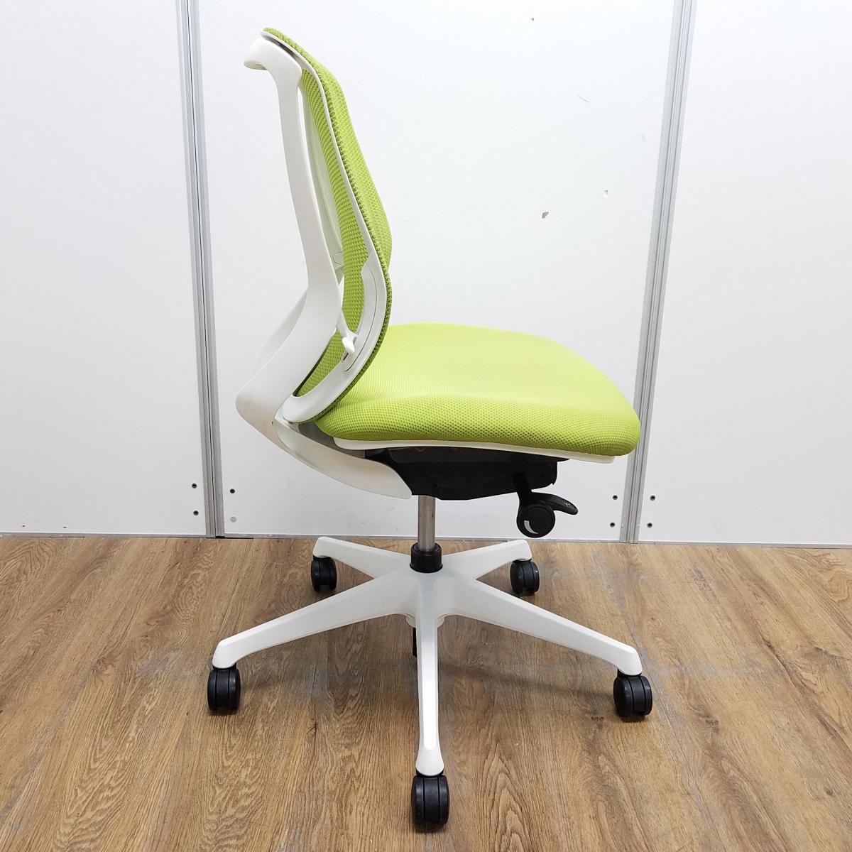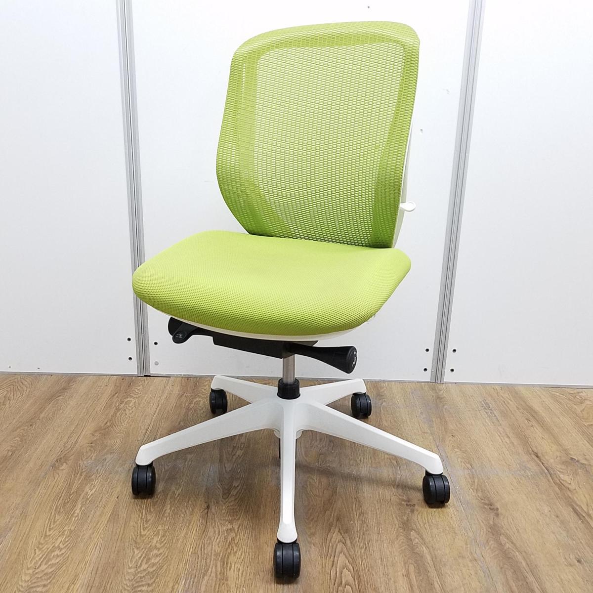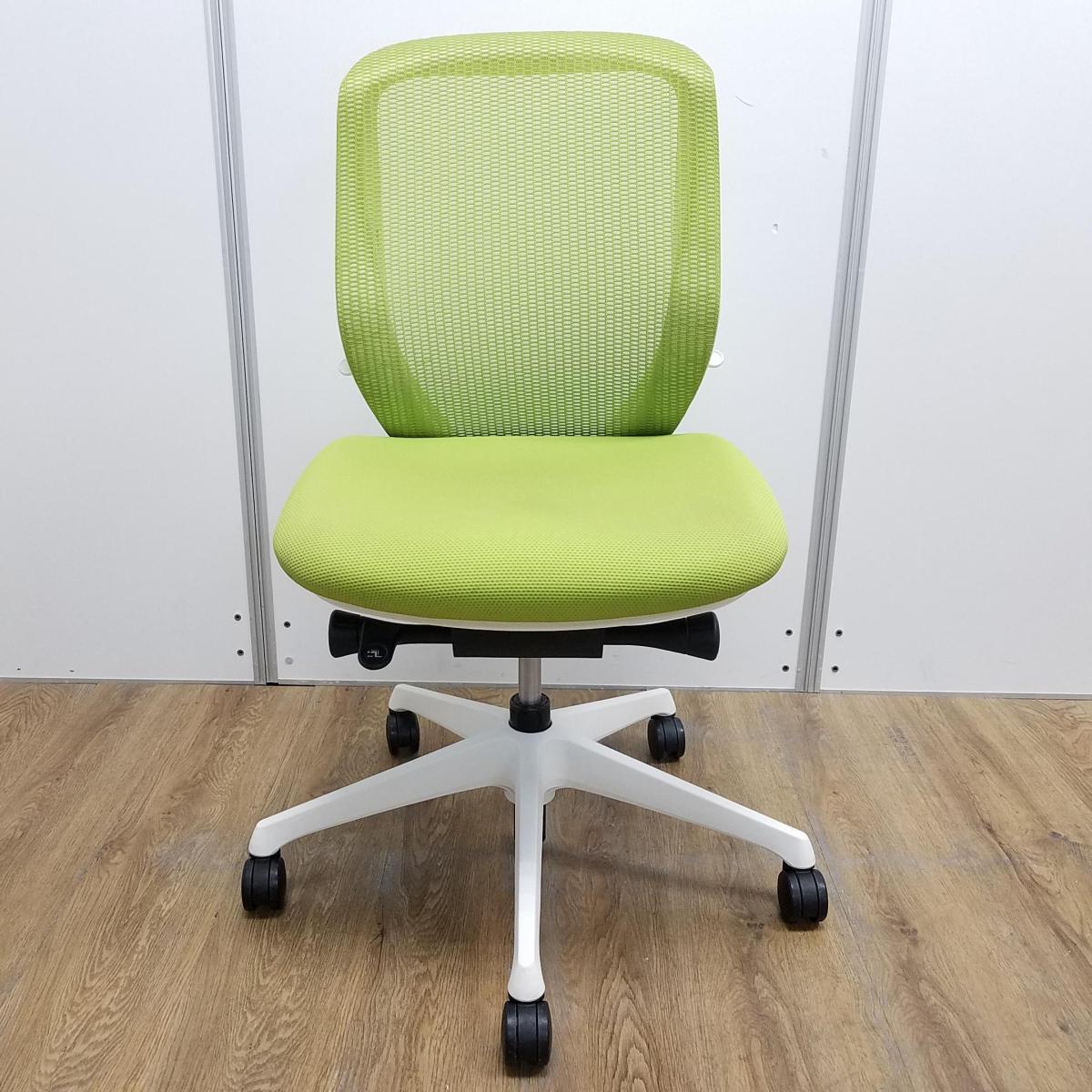 オカムラ製 シルフィシリーズ ライムグリーン ローバック 肘無し 背面メッシュ ホワイトシェル 前傾チルト 三次元曲面が快適にフィット!!機能付の大人気メッシュチェア! 肘無しローバックチェア!!- 京都東寺店