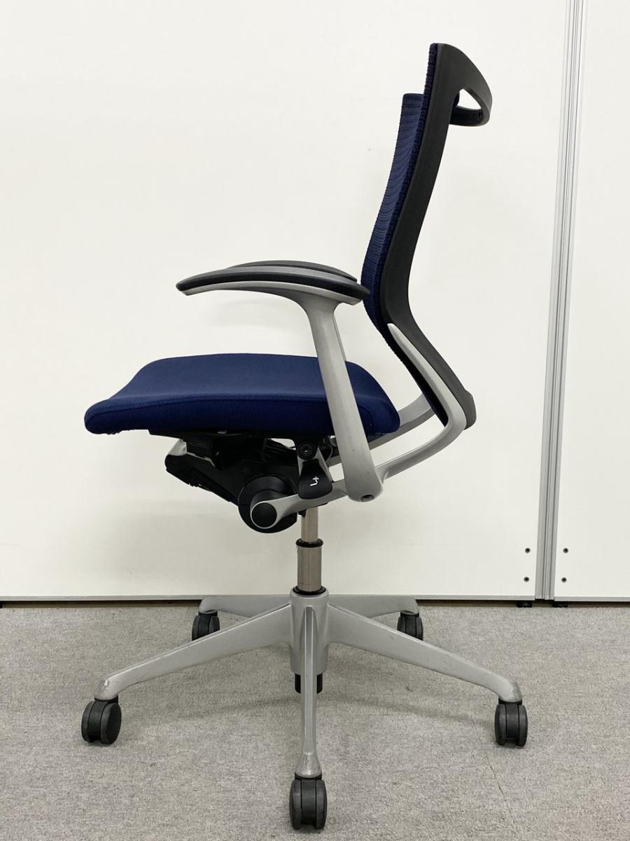 【座面が大人気!国産メッシュチェアの代表格!】■オカムラ(okamura)製 バロン(Baron)チェア ローバック 肘付き ■背面メッシュ ■固定肘 ■色:ダークブルー ■ハンガー付き