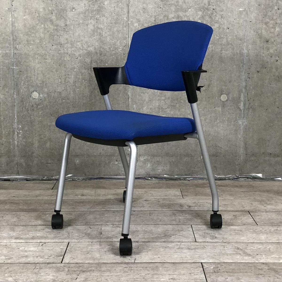 【シンプルスマートなスタッキングチェア!】■コクヨ(KOKUYO) プロッティ(Protty)チェア スタッキングチェア ミーティングチェア ■肘付き キャスター付き ■ブルー- なんば日本橋店