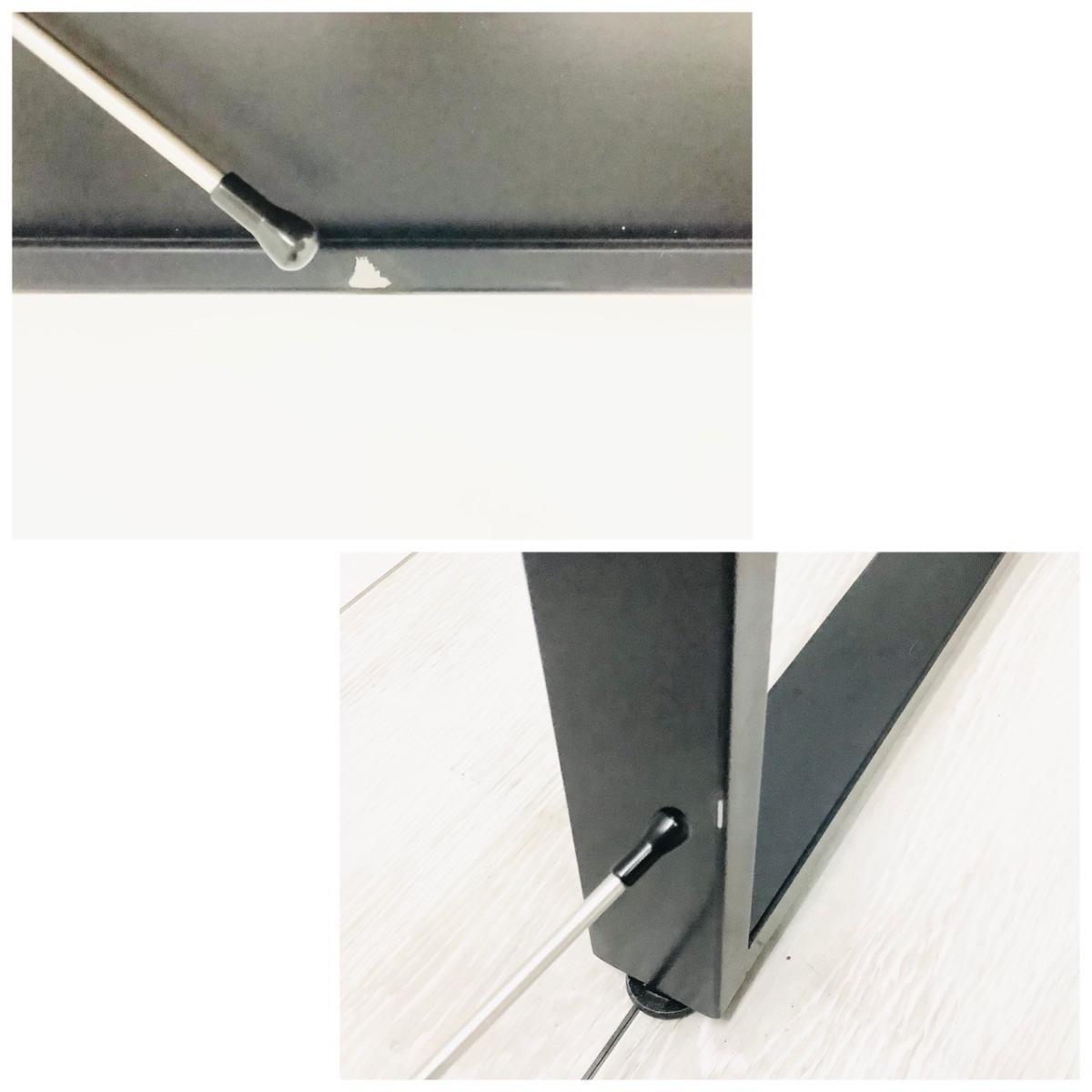 - 目立つ箇所あり傷・凹みが多数、深い傷・凹みが一部ある。(例、天板、幕板、棚板、サイド部分、脚部等にある。)