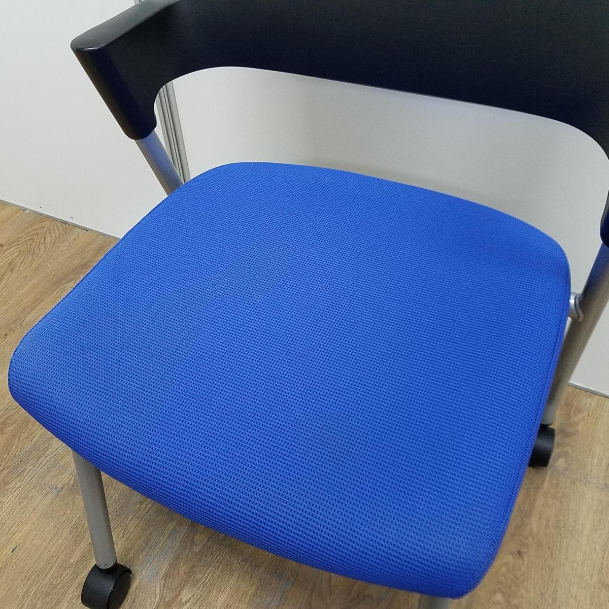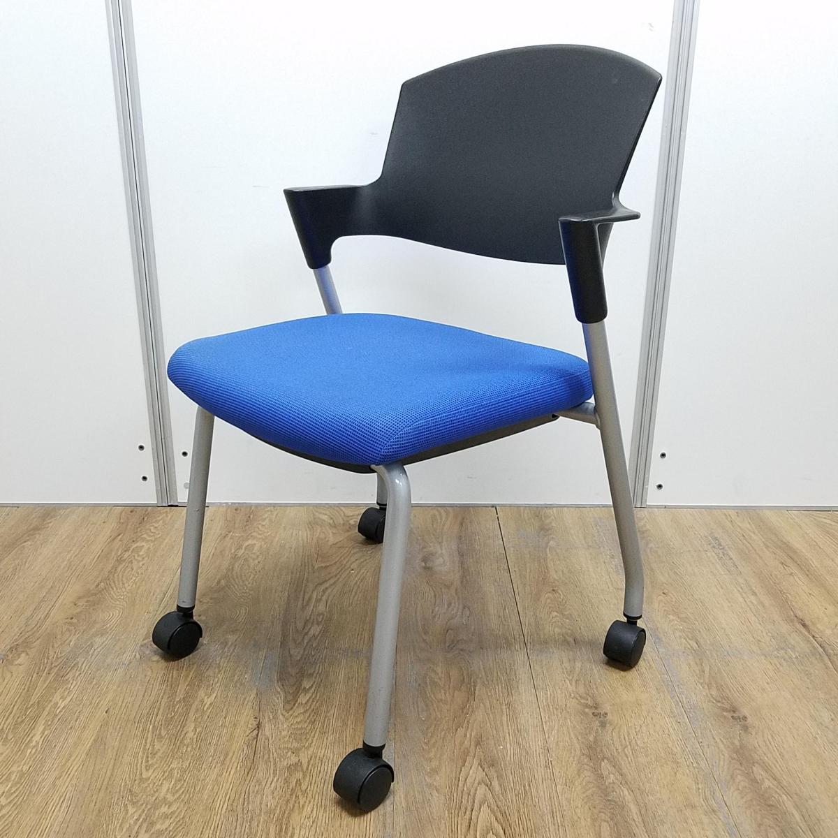 【商品入替のため、残り5脚限り】コクヨ製 人気のプロッティシリーズ ブラックxブルー キャスター付き スタッキングチェア!!- 京都東寺店