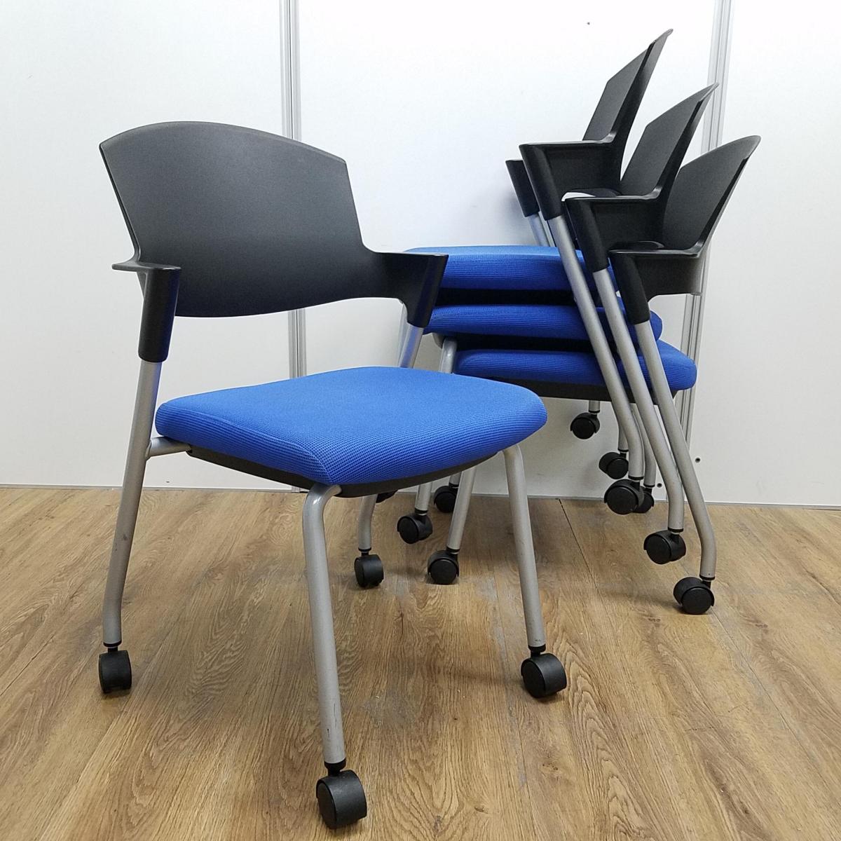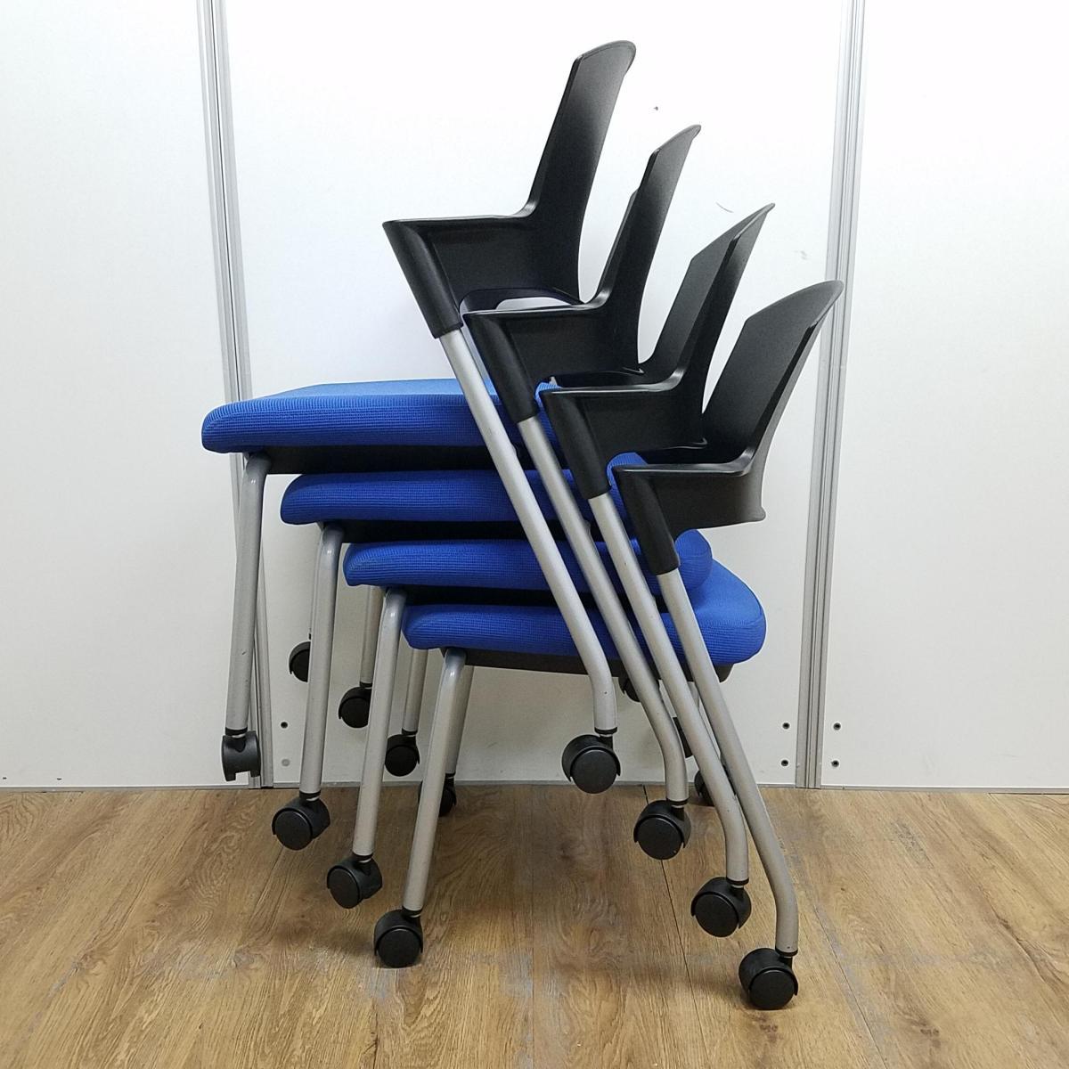【4脚セット!!】コクヨ製 人気のプロッティシリーズ ブラックxブルー キャスター付き スタッキングチェア!- 京都東寺店