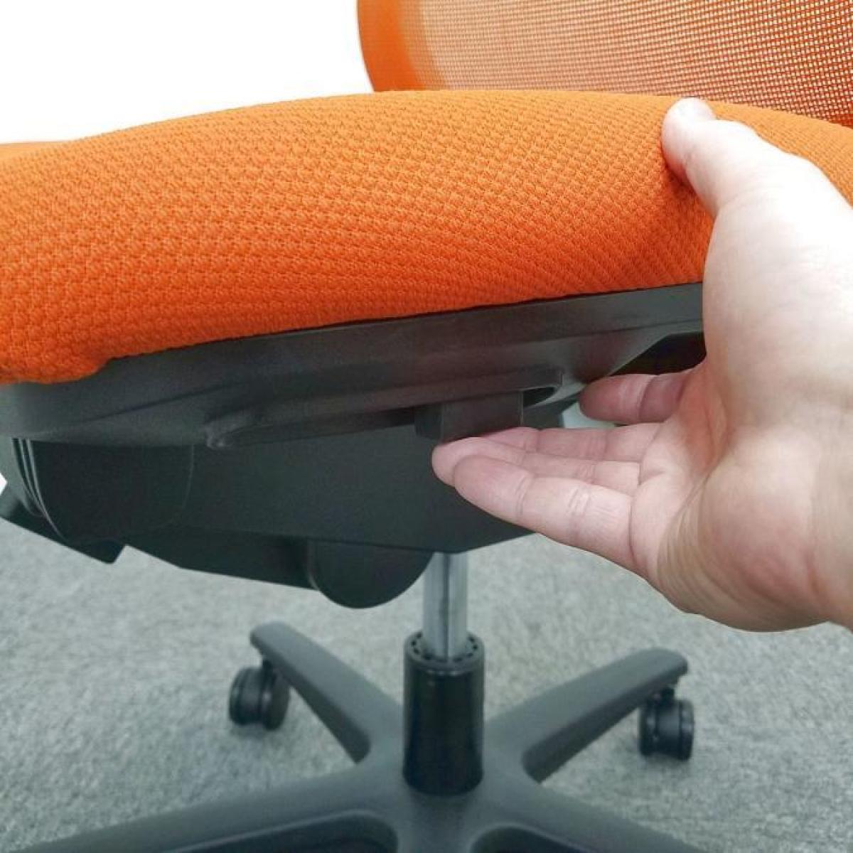 - 座面の高さは上下に90㎜、奥行は前後に50㎜調節可能。さらに骨盤を支えるポスチャーシート採用で着座時の前滑りを防ぎます。