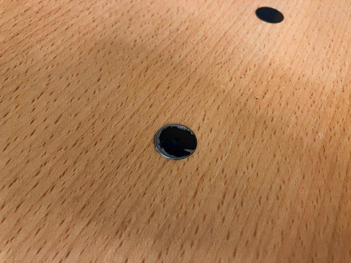 背面のビス穴隠しのキャップが1箇所欠損しております。(写真5枚目右上、6枚目参照)