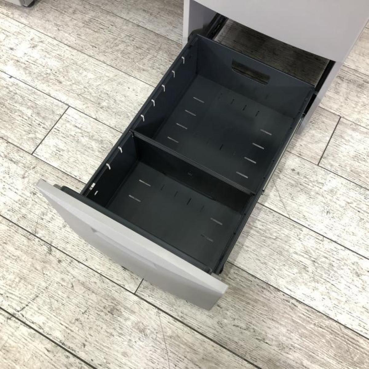 正面から見て右側の引出しは3段で、小物からA4サイズのファイルも収納可。