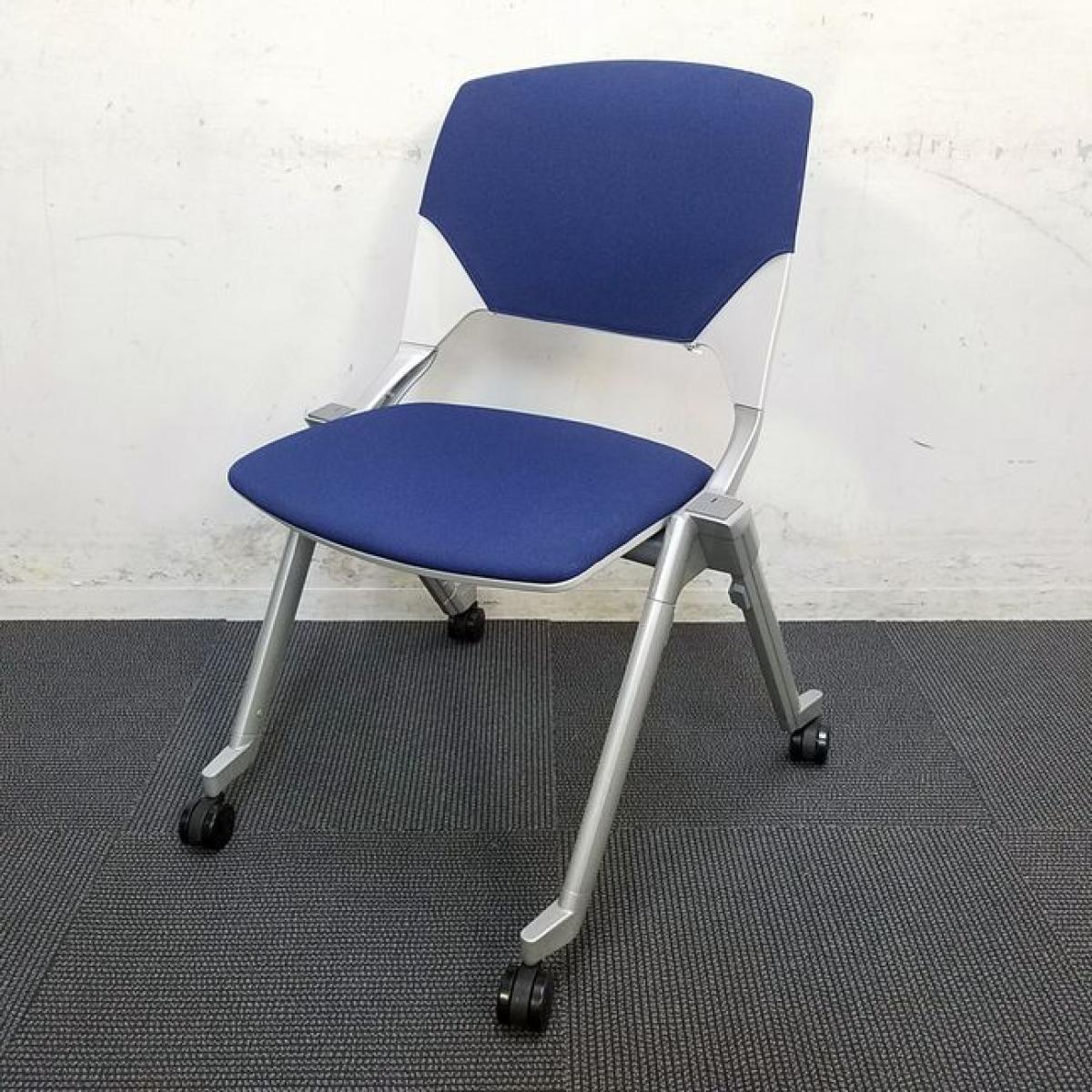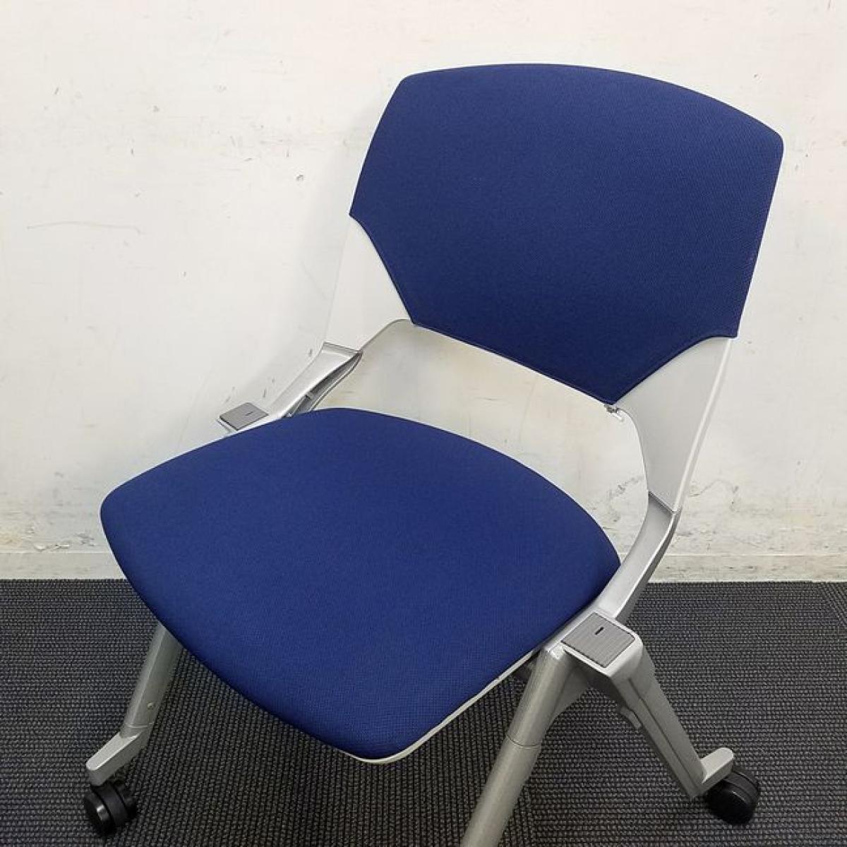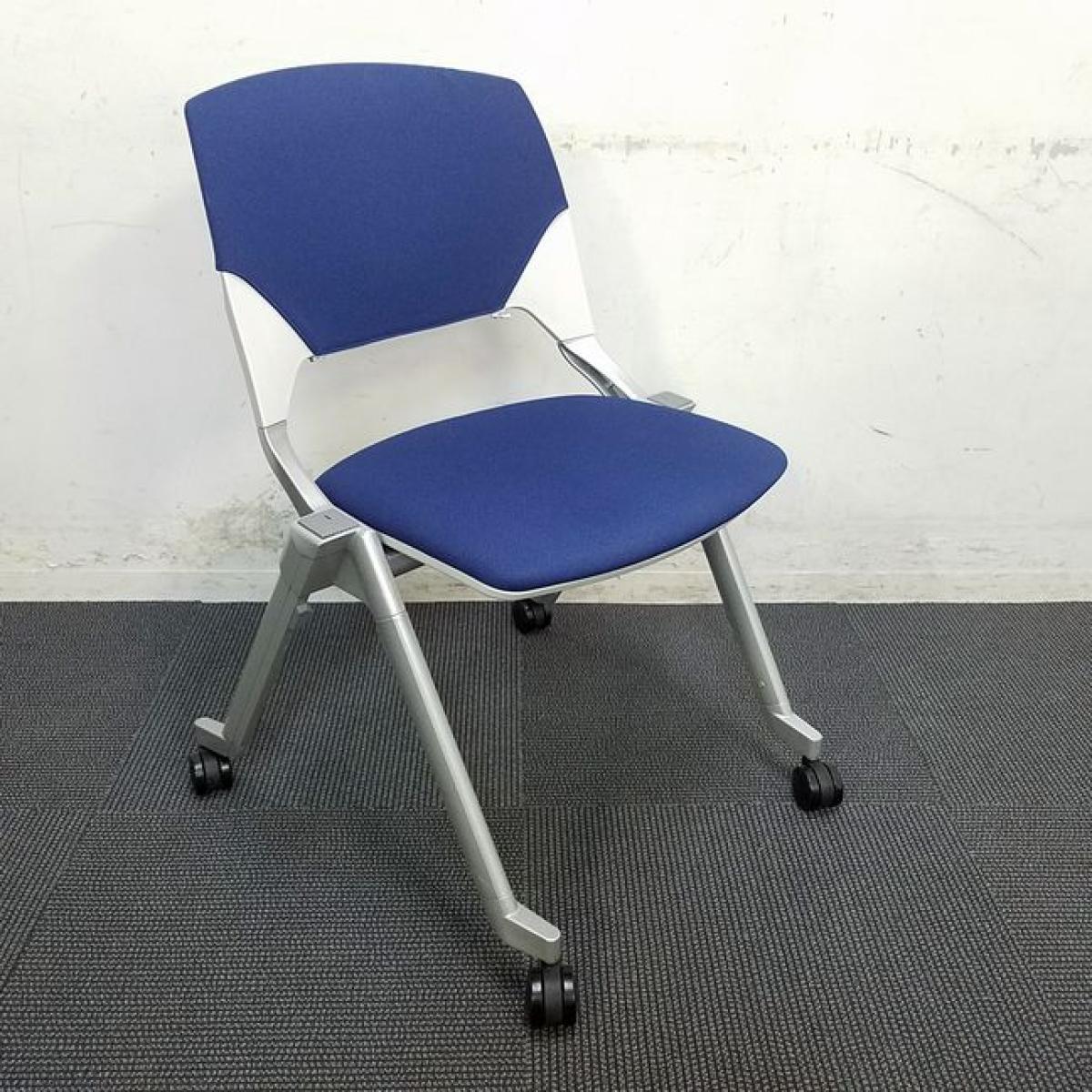【在庫セール品・8脚限定】■ウチダ(UCHIDA) FM-320 スタッキングチェア ネスティングチェア 肘無 キャスター付 ■ダークブルー 【平行収納、重ねての収納どちらも可能な珍しい仕様のミーティングチェア!】- 新大阪店