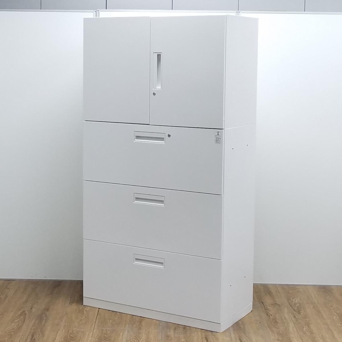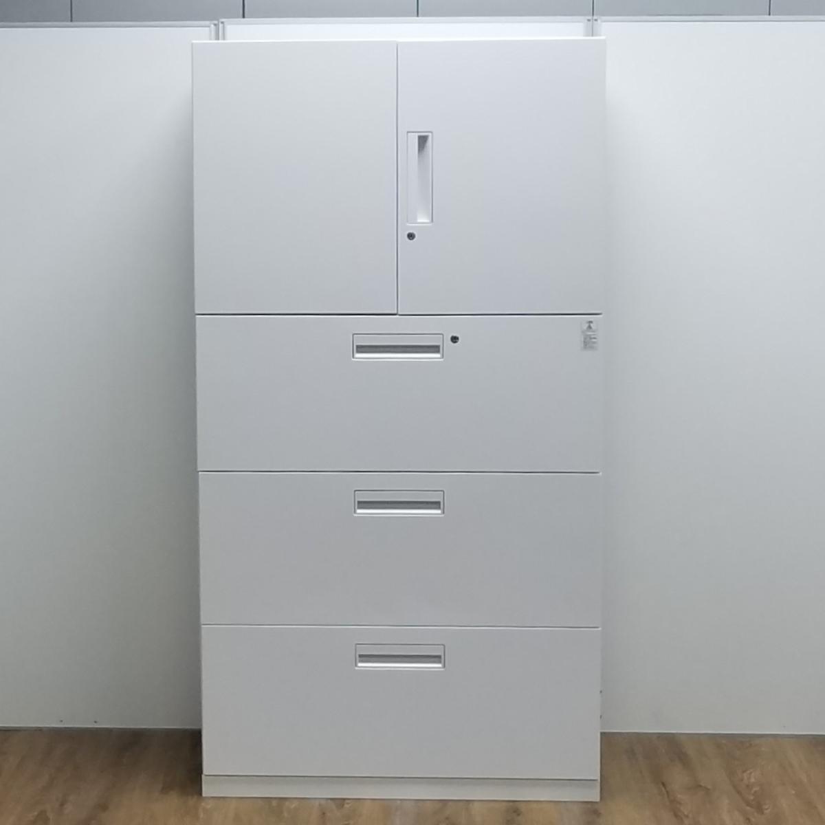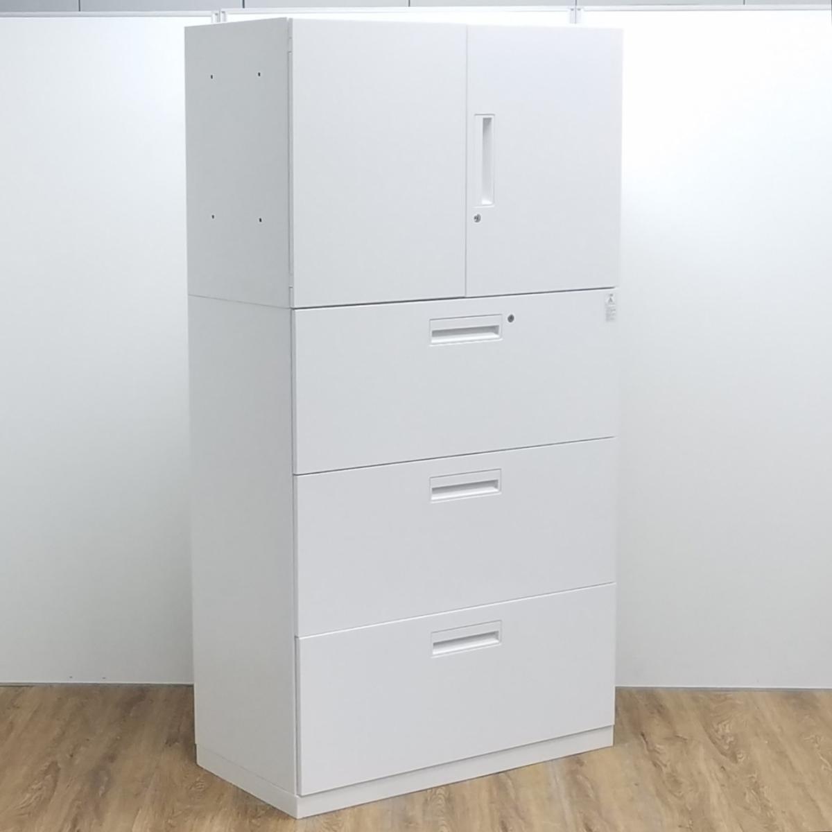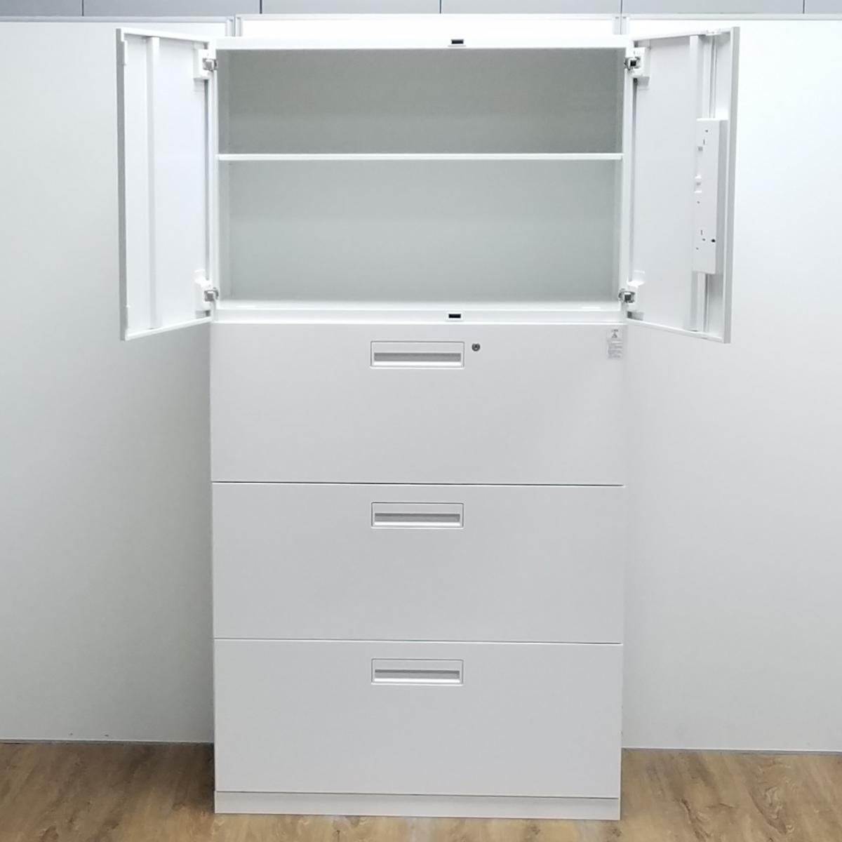 【商品入替のため、残り1台限り】【側面などに凹み】コクヨ製 エディアシリーズ ホワイト H1700サイズ シリンダー 両開き+3段ラテラル 上下書庫セット!!- 京都東寺店