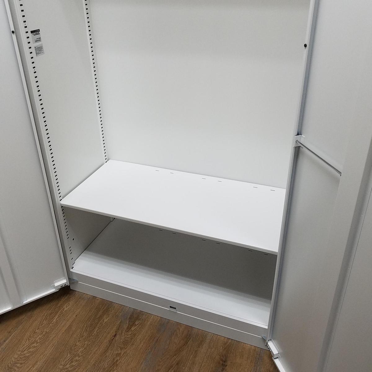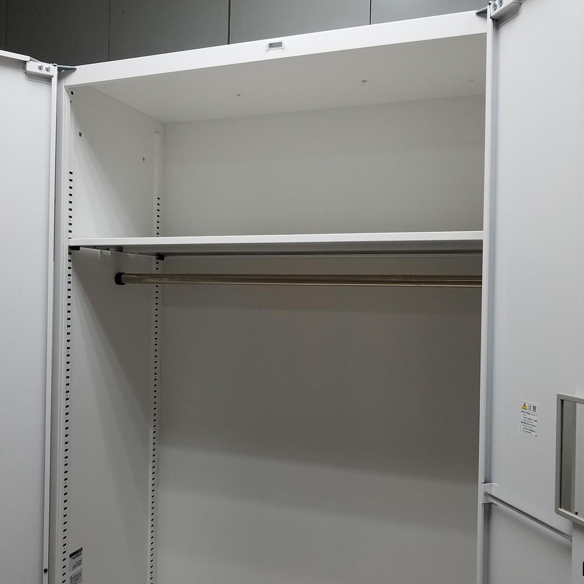 見た目は両開き書庫で中身はハンガーバーの付いたロッカーになっています。