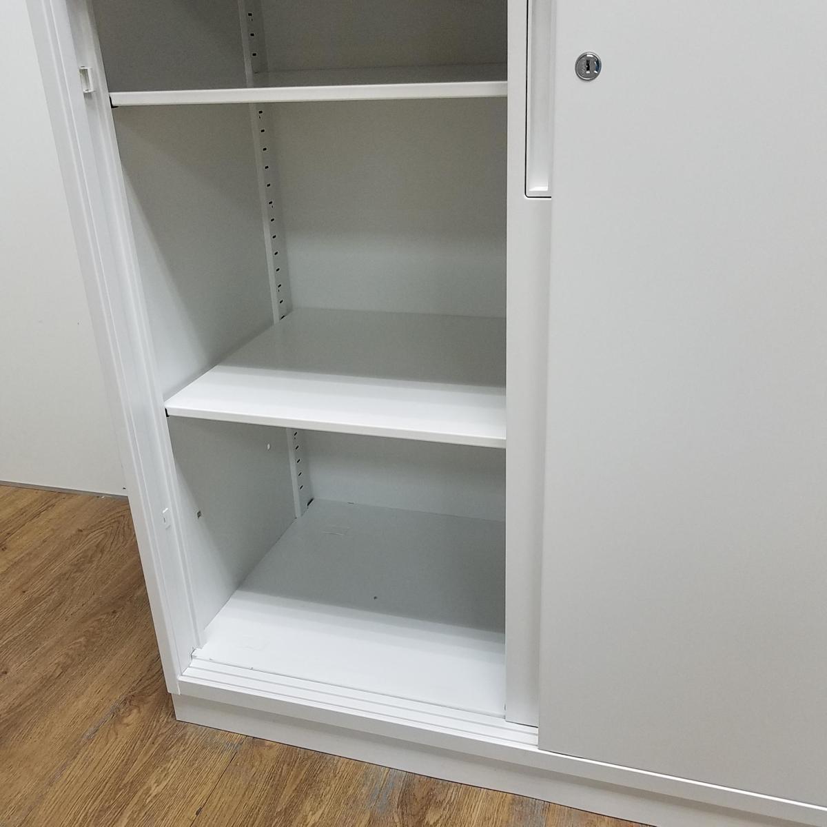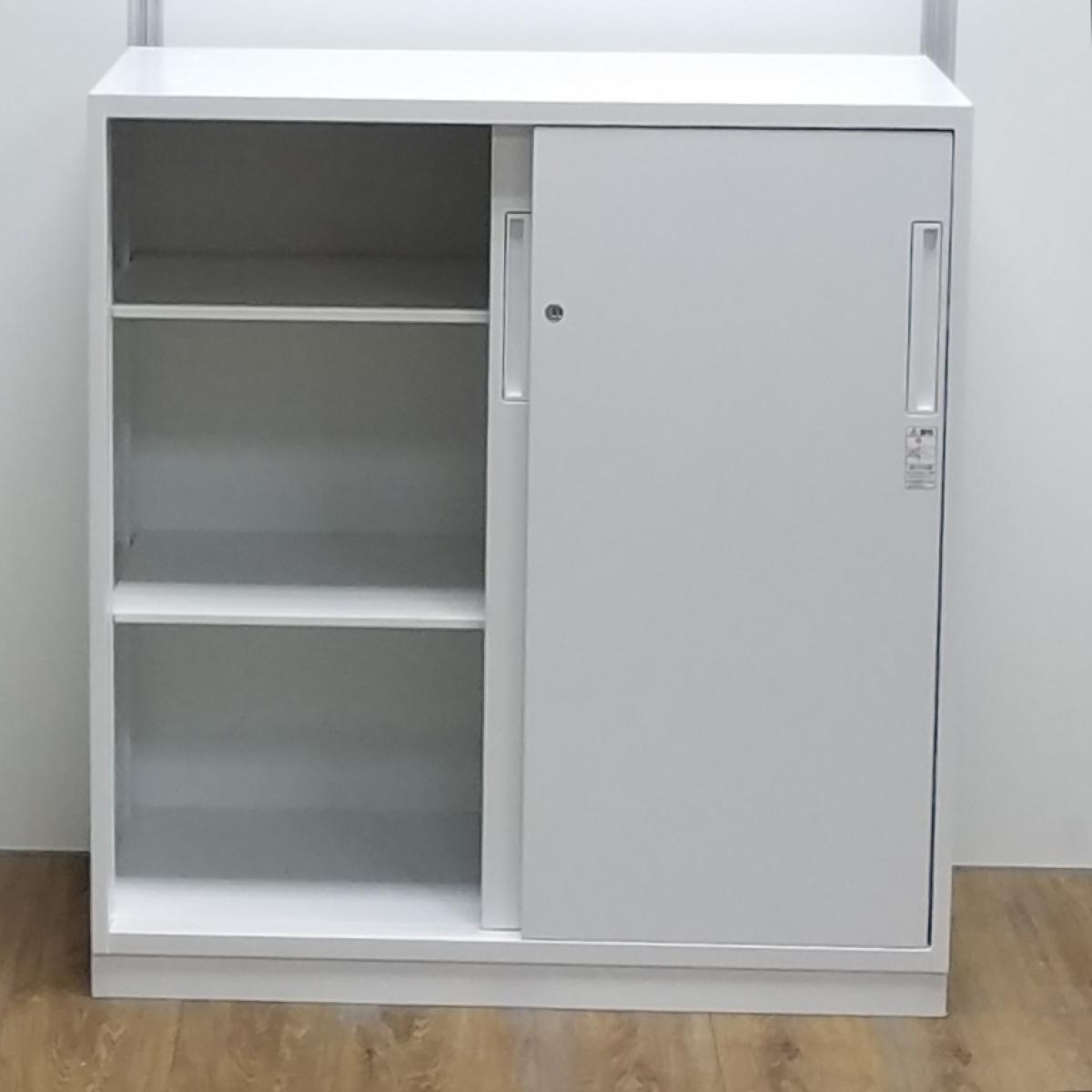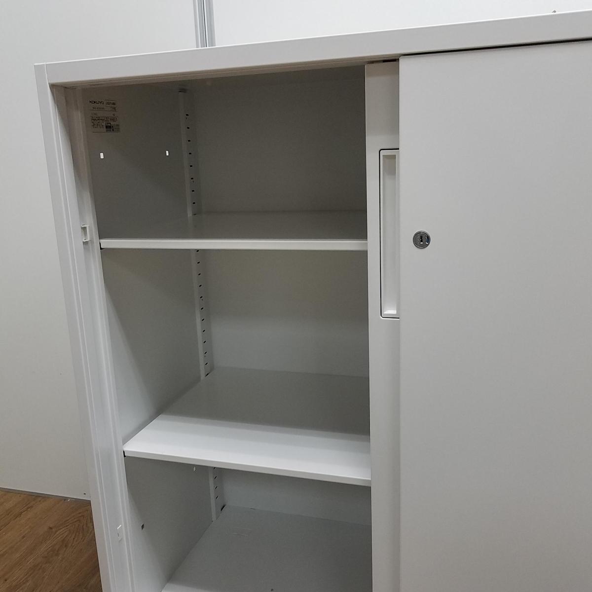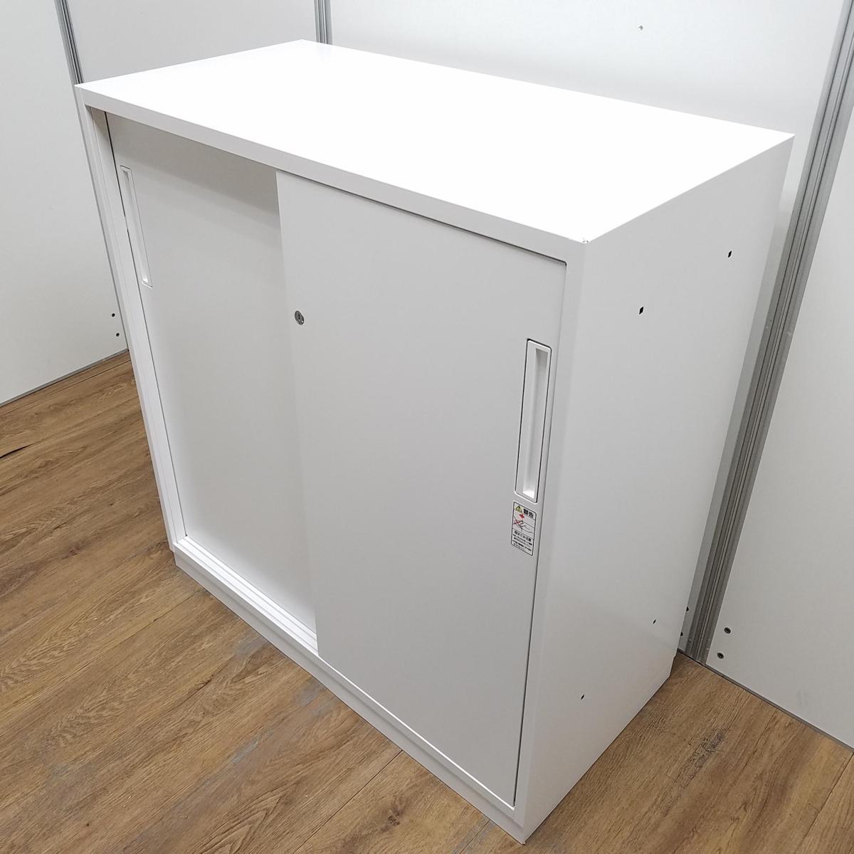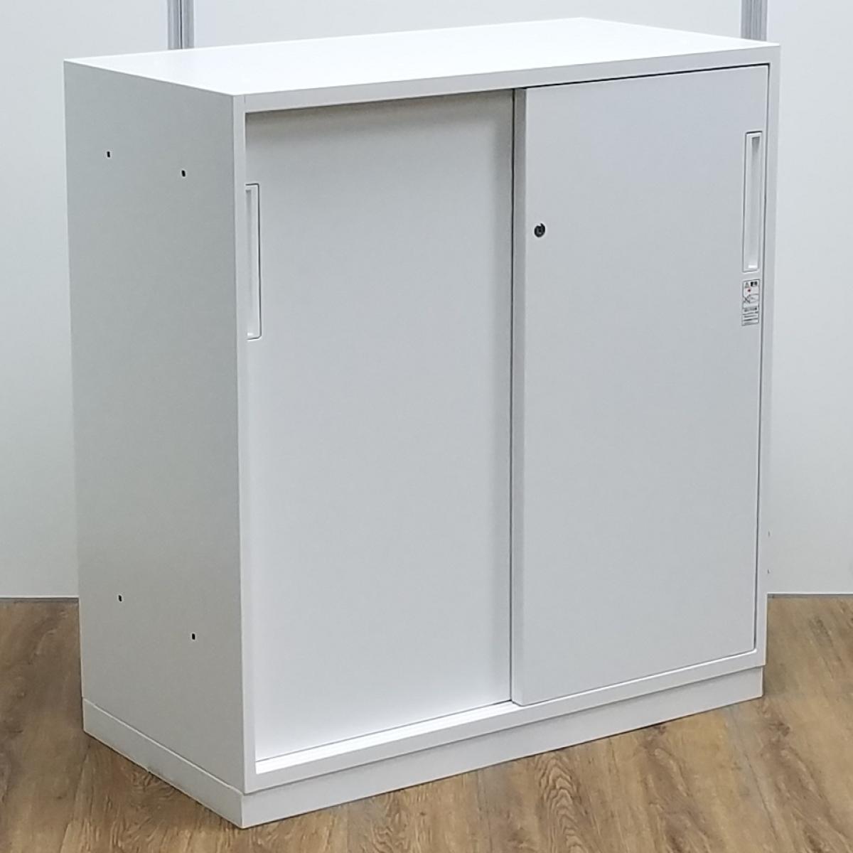 【T9】【商品入替のため、残り2台限り】【レア:H965サイズ】コクヨ製 エディアシジリーズ ホワイト スライド扉でスペースを有効活用! ローキャビネット 2枚引き違い書庫!!- 京都東寺店