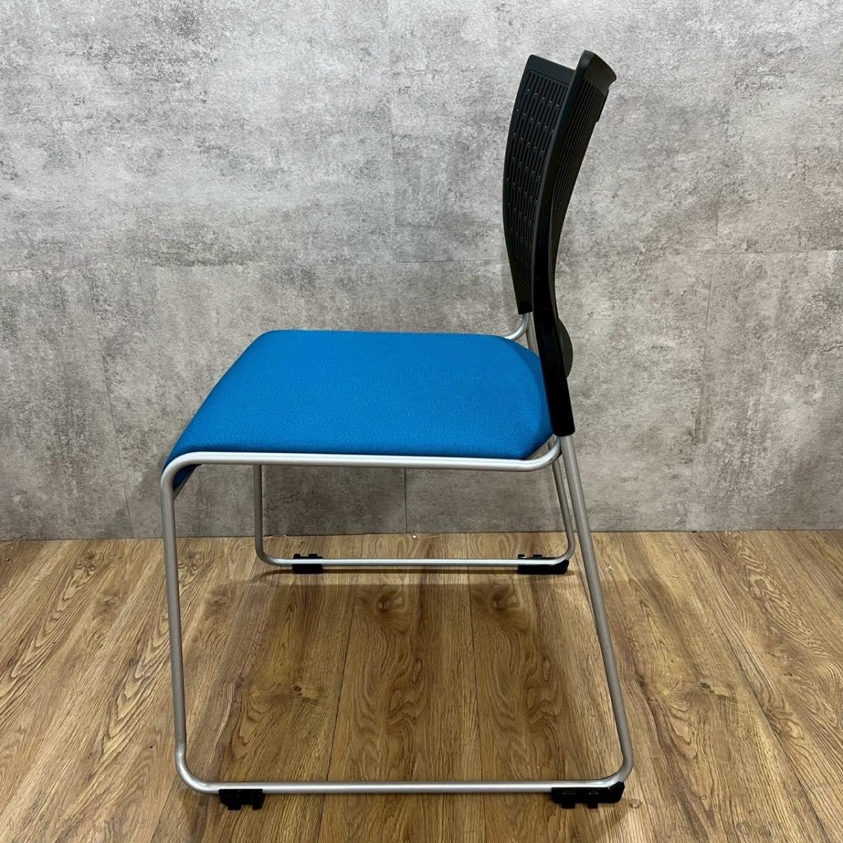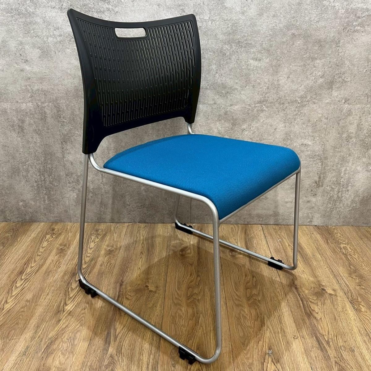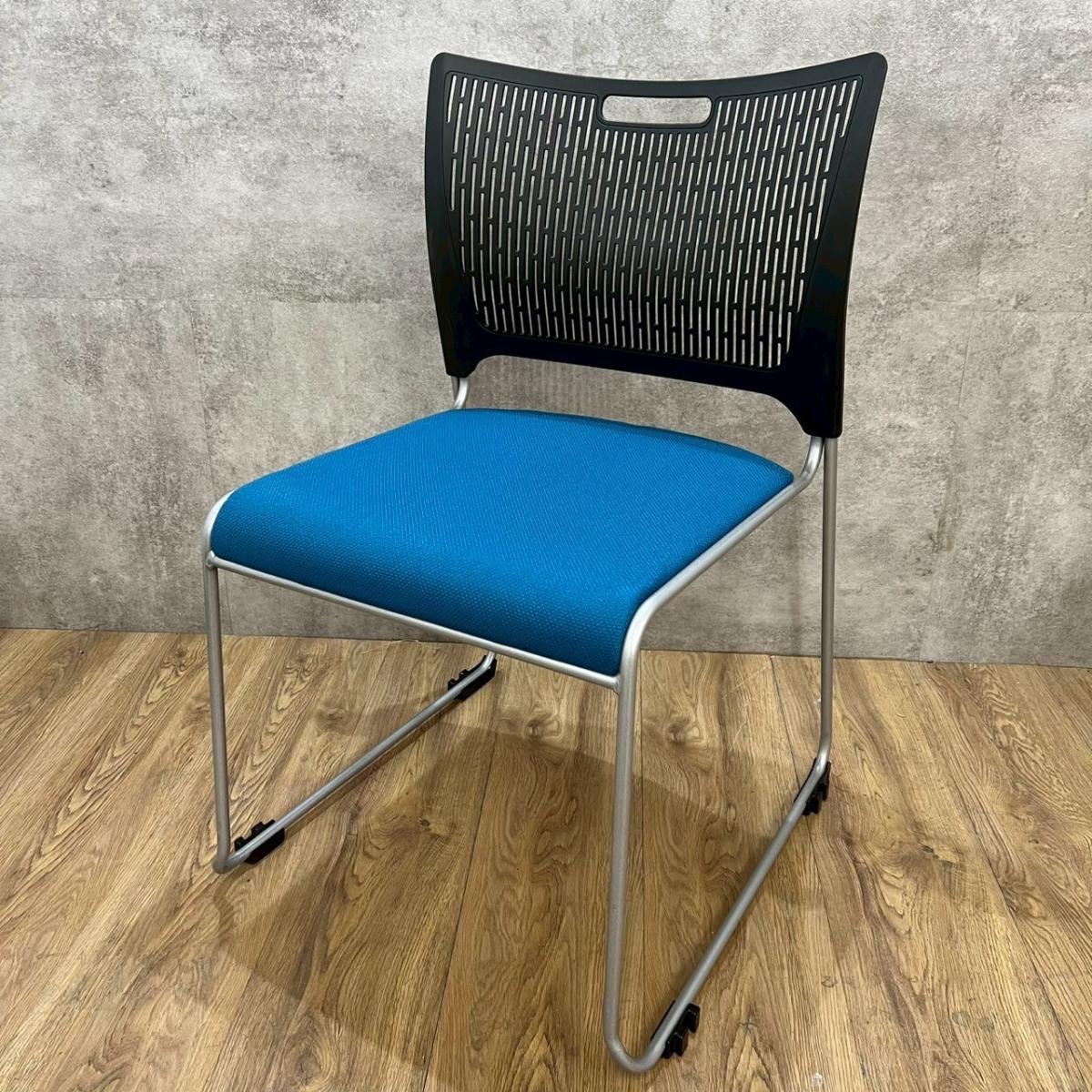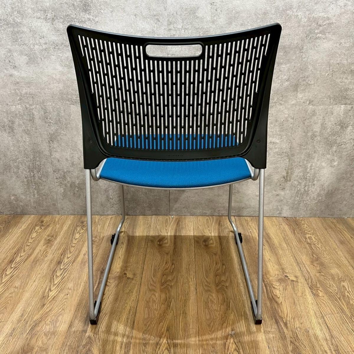 【重ねて収納可能!さわやかなカラーとシンプルデザイン!】■オカムラ製 レーテ スタッキングチェア ミーティングチェア ■キャスター付き ■座面ブルー×背面ホワイト【2412】弊社使用欄【A00990049】