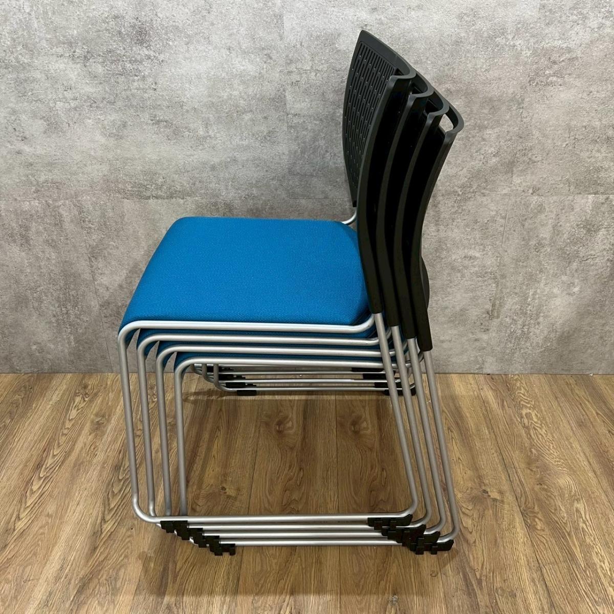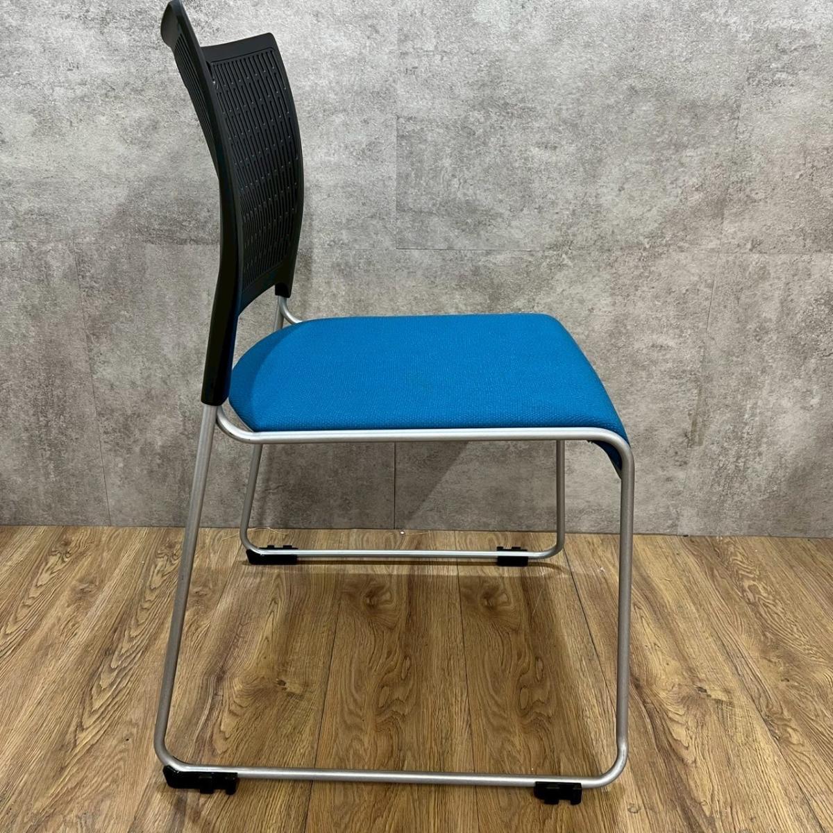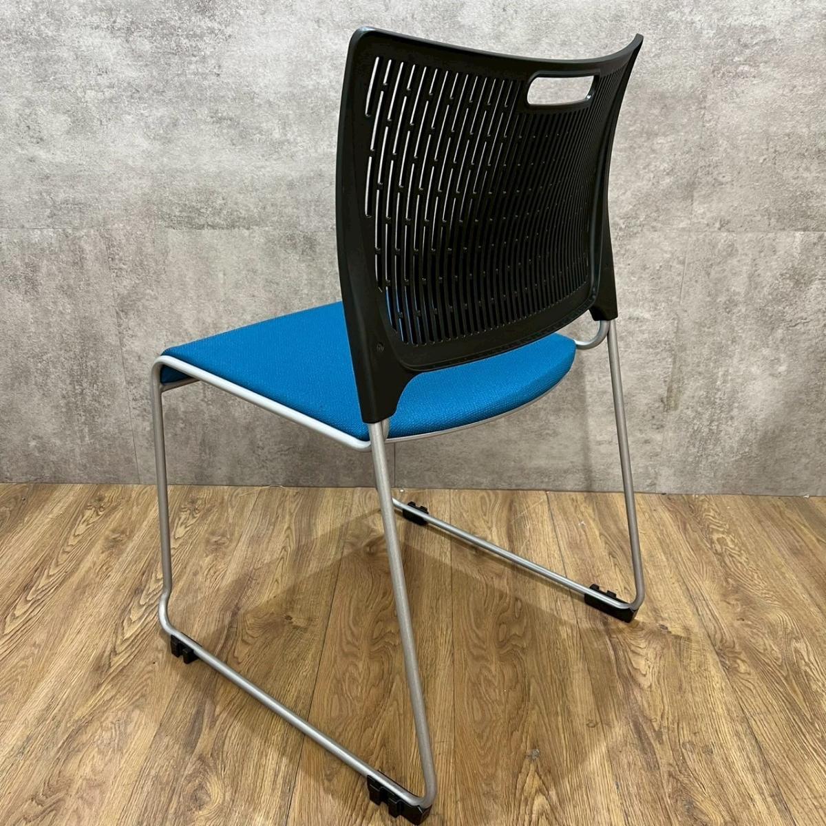 【重ねて収納可能!さわやかなカラーとシンプルデザイン!】■オカムラ製 レーテ スタッキングチェア ミーティングチェア ■キャスター付き ■座面ブルー×背面ホワイト【2412】弊社使用欄【A00990049】