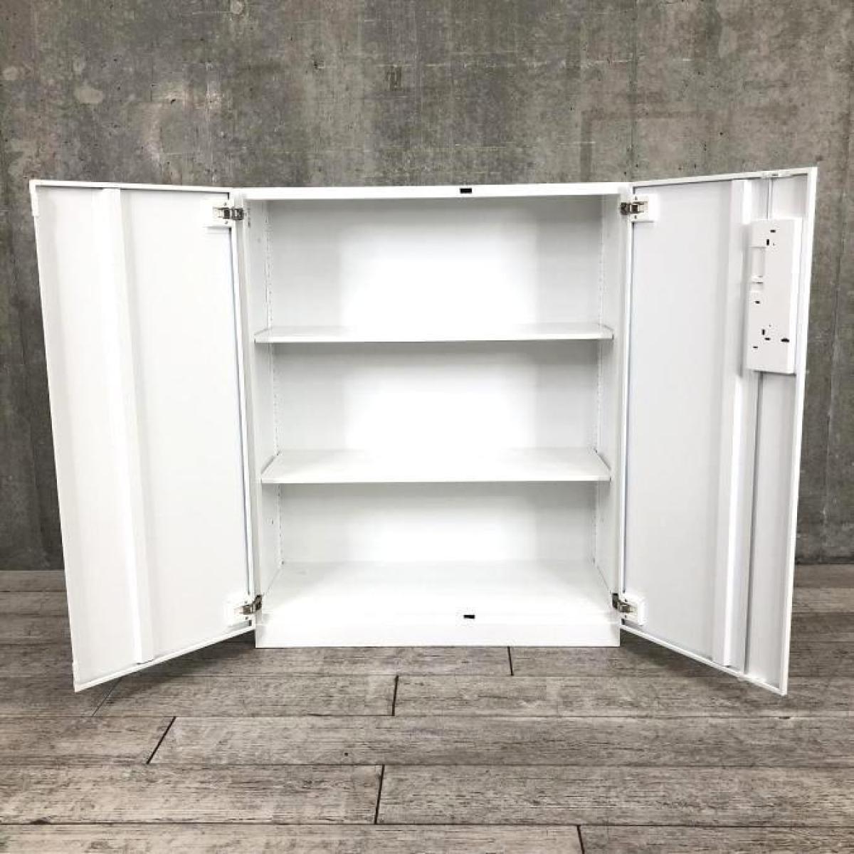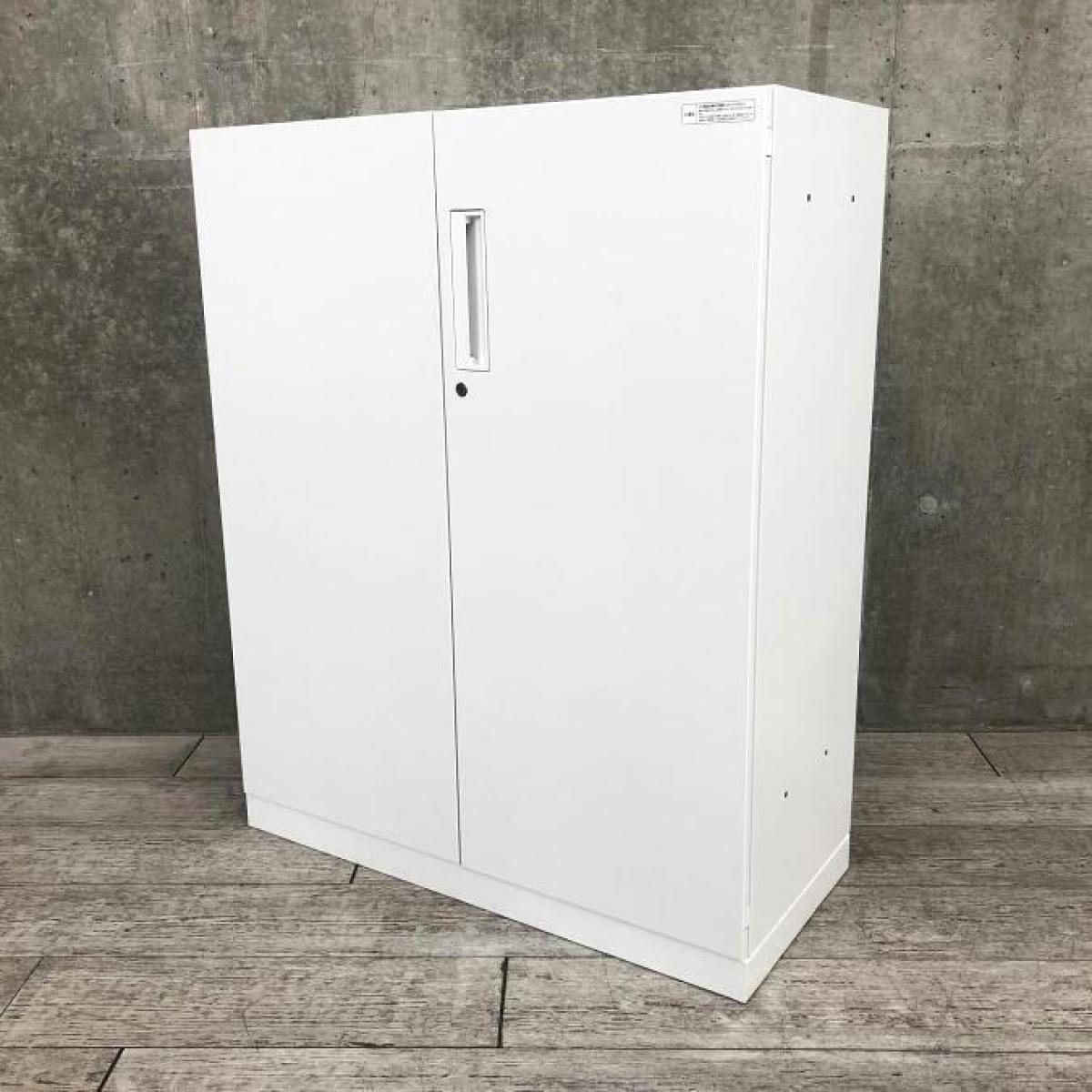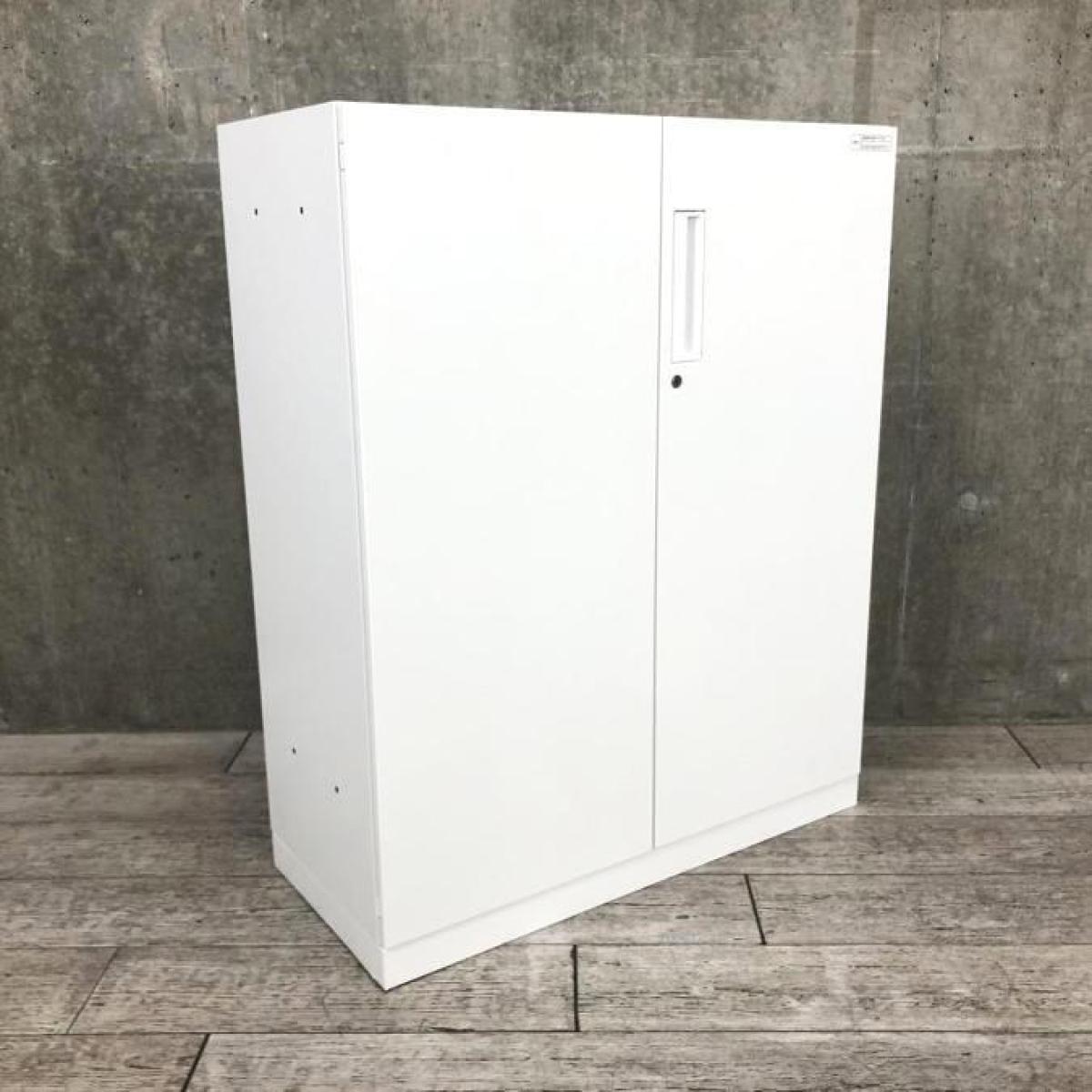 【収納物がひとめで分かる両開き戸タイプ!】■コクヨ(KOKUYO)製 エディア(EDIA)シリーズ 両開き書庫 ローキャビネット H1130㎜ ■天板・ベース付 ■ホワイト ■シリンダー錠