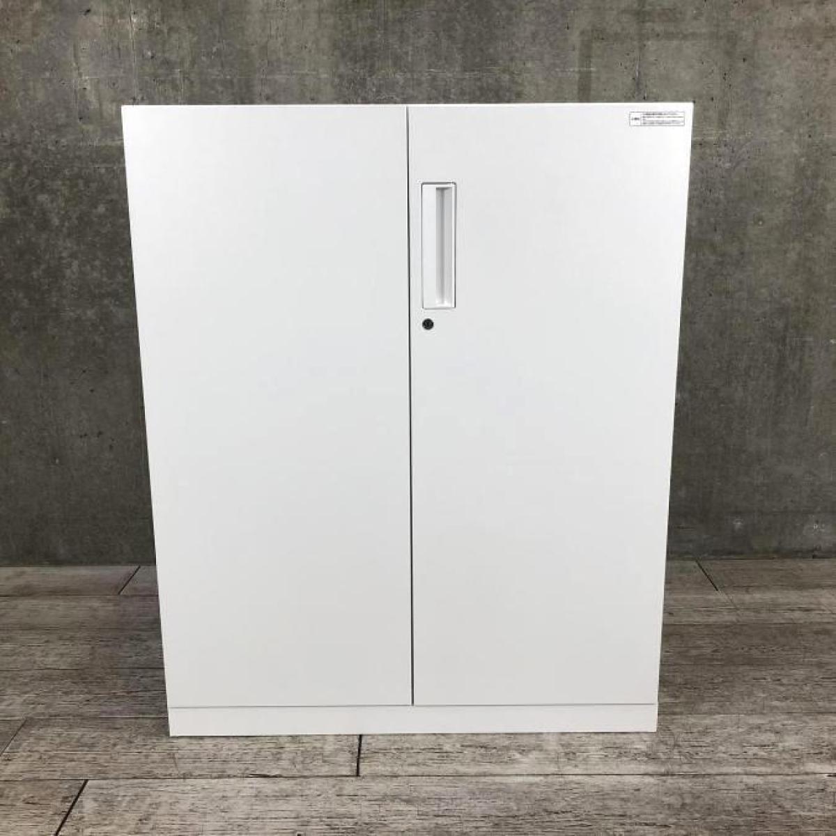 【収納物がひとめで分かる両開き戸タイプ!】■コクヨ(KOKUYO)製 エディア(EDIA)シリーズ 両開き書庫 ローキャビネット H1130㎜ ■天板・ベース付 ■ホワイト ■シリンダー錠【IB】