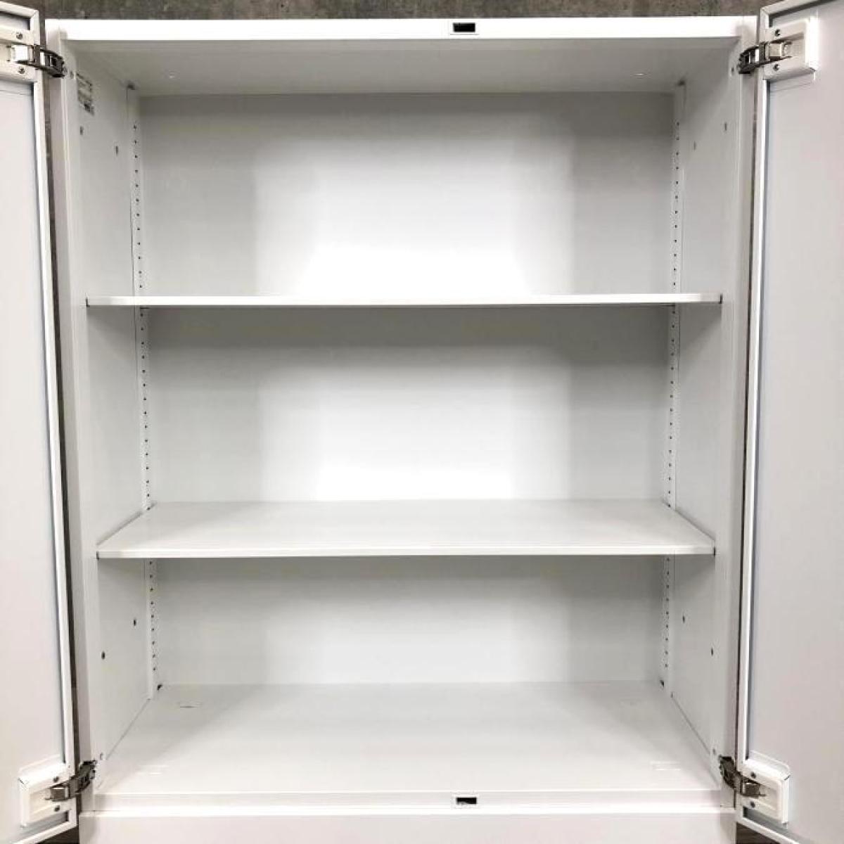 【7/9・3台限定】【シャープでスリムなデザイン!棚板は上下に調整が可能!】■コクヨ製 エディア 両開きローキャビネット ■ホワイト ■シリンダー鍵 ★オフィスバスターズ心斎橋店サーキュラーバリューCO2削減量の算出について