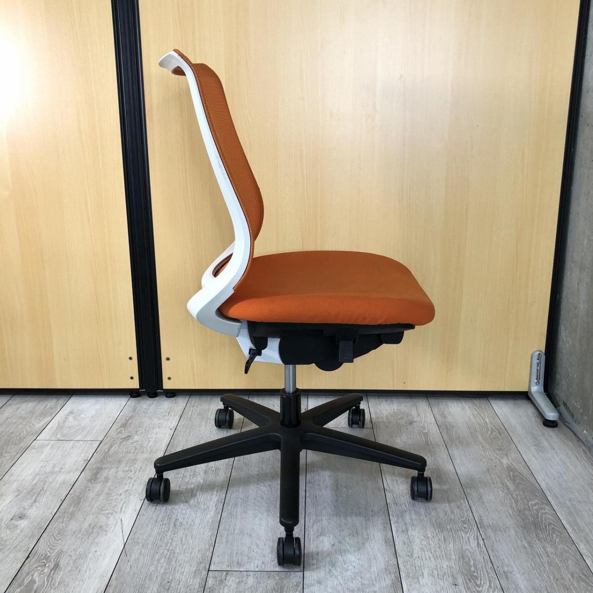 【すっきりと上質なデザイン!快適な座り心地を実現するオフィスチェア!】■コクヨ(KOKUYO)製 ミトラ チェア(Mitra) 背面メッシュタイプ ローバック肘無し ■タンジェリンオレンジ×ホワイトシェル- 千葉店