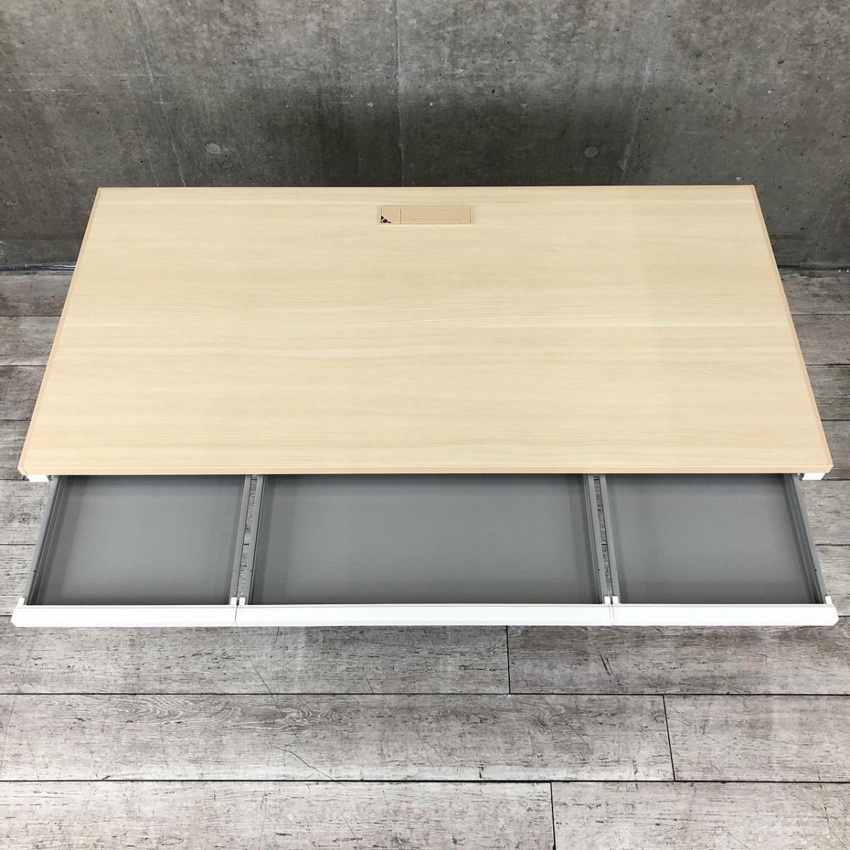 【在庫入替セール品】【仕事が捗る!広々充実のワークスペース!】■ウチダ(UCHIDA)製 スカエナ(SCAENA)シリーズ 平デスク 配線Sタイプ 引き出し付 W1400×D700×H720mm ■天板:木目ナチュラル/本体:オフホワイト- 千葉店
