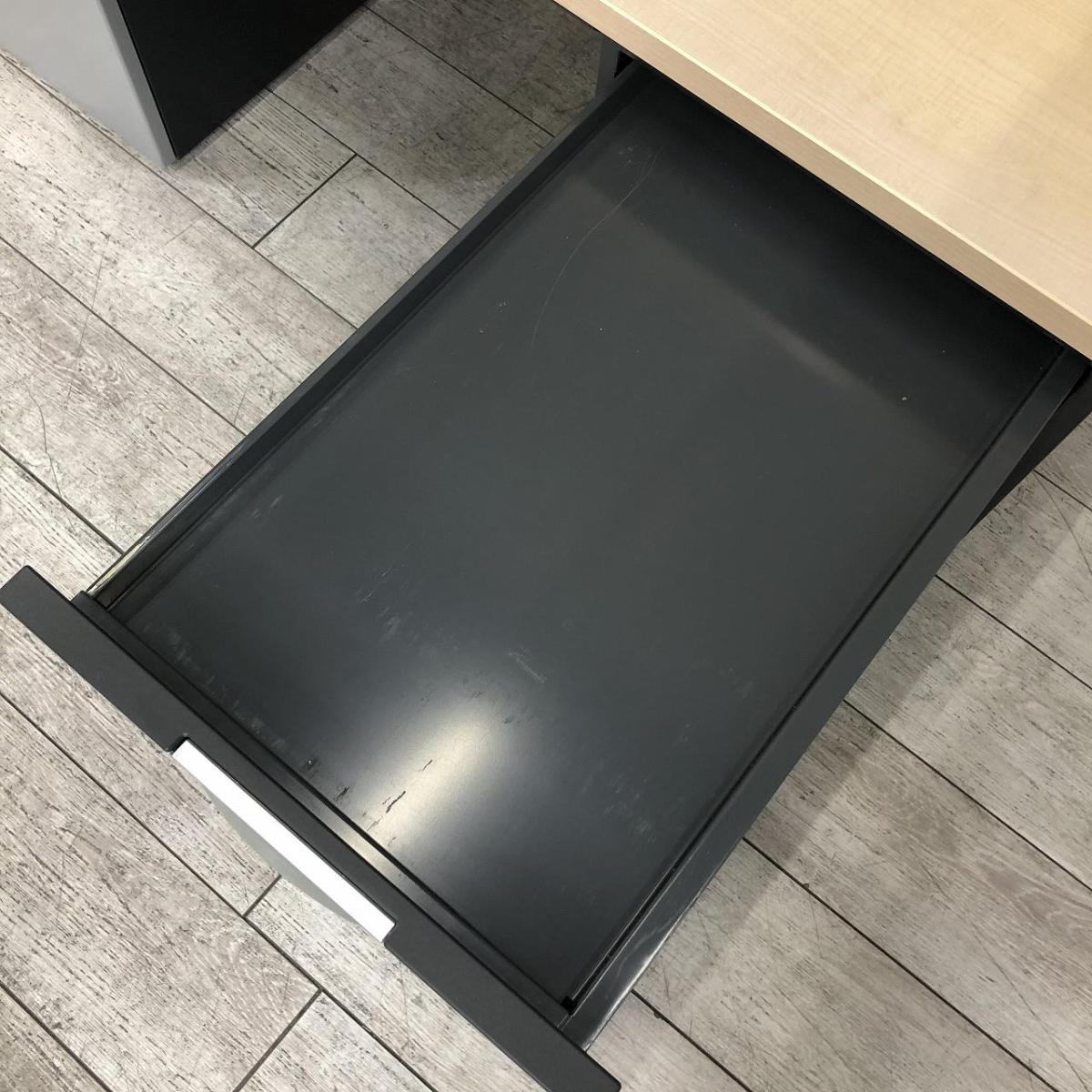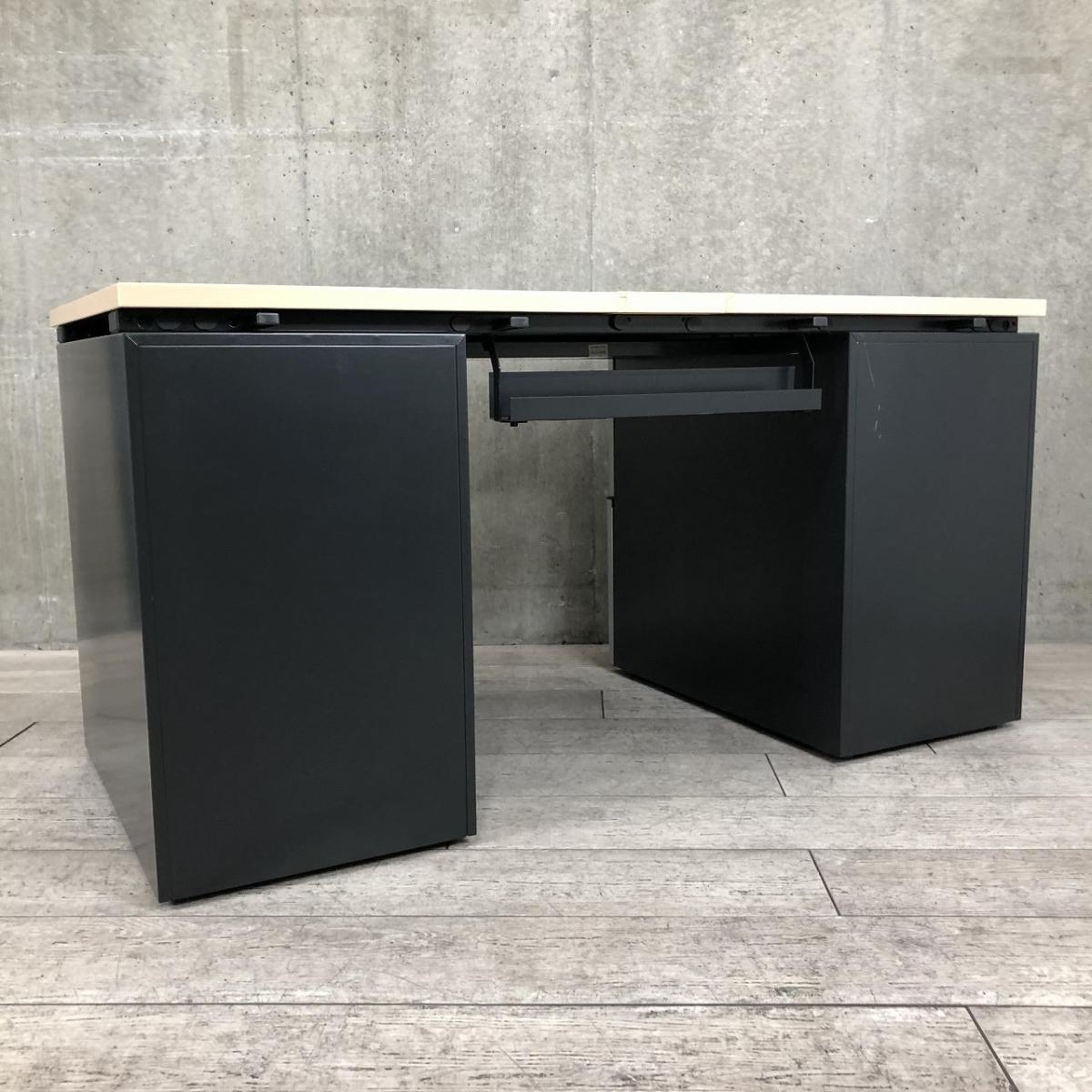 【在庫入れ替え】【スタイリッシュなデザインの両袖机!右側が引き出し式の棚のタイプ!】■コクヨ(KOKUYO) デルフィ((Delphi) 両袖デスク W1400mm ■左袖:2段 右袖:引き出し式棚 ■天板:ナチュラル 本体:シルバー&ブラック- 名古屋本店