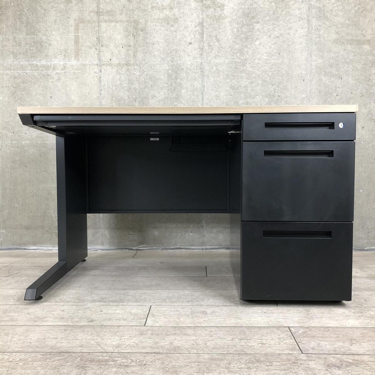 【在庫入れ替え】【スタイリッシュなデザインのオフィスデスク!】■イトーキ(ITOKI)製 CZRシリーズ 片袖デスク W1200×D700×H720mm ■天板:木目(アッシュドオーク) / 本体:ブラック- 名古屋本店