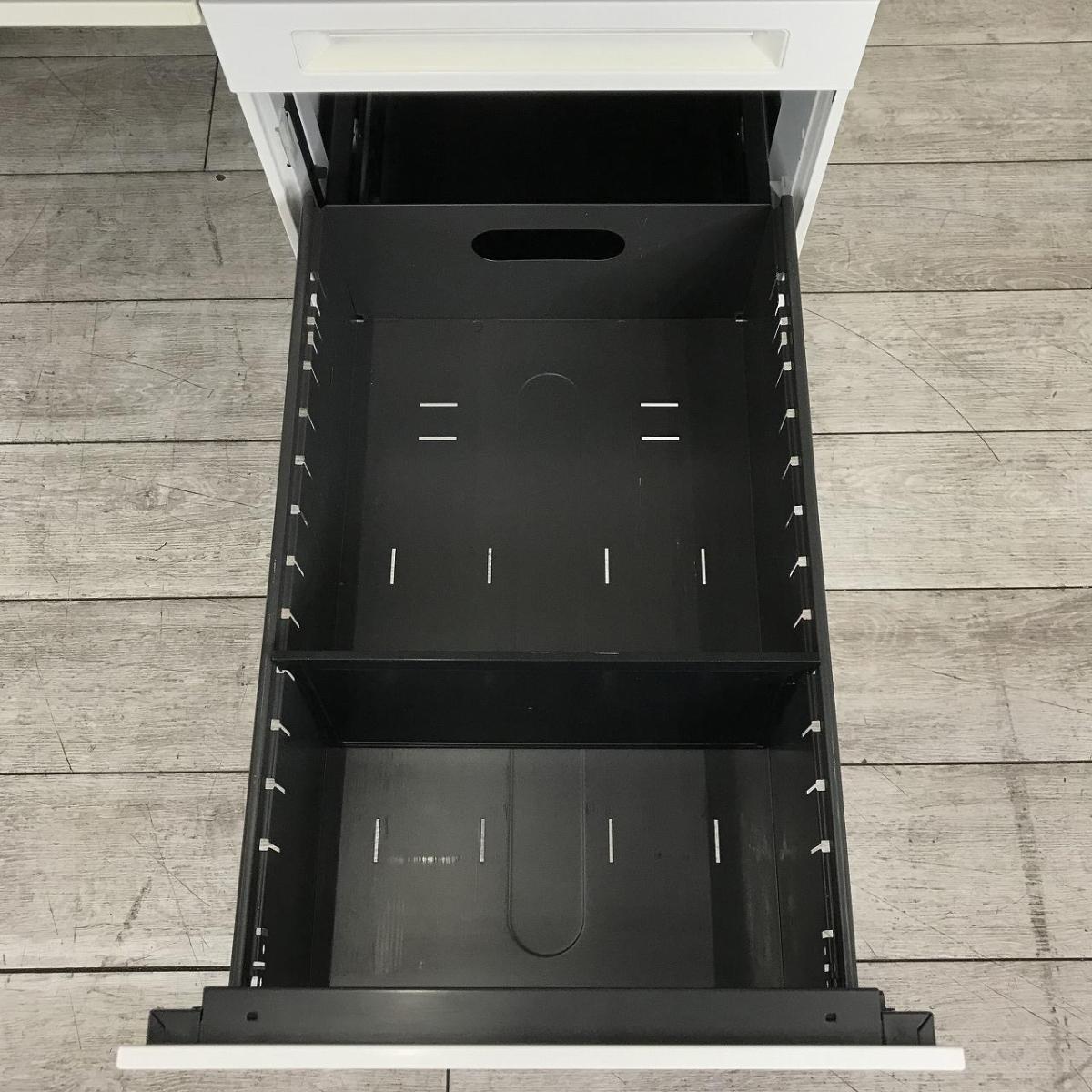 幅1100㎜とコンパクトサイズですが右側に3段の引出しがありますので、