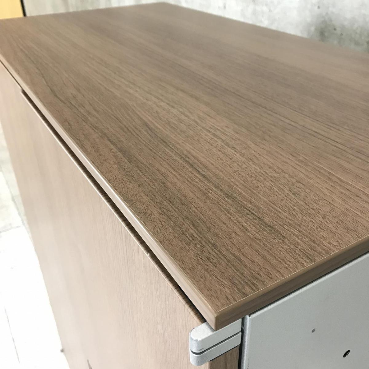 【在庫入替セール品】【役員室にもピッタリ!重厚感がいい味を醸し出す!】■オカムラ(okamura)製 レクトラインシリーズ 両開きローキャビネット ■正面:木目ダーク/側面:シルバー/天板:木目ダーク ■シリンダー錠【弊社使用欄:A01020603】