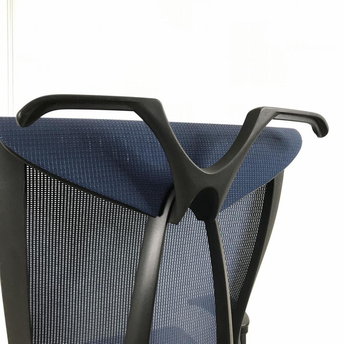 【K11】【T9】【商品入替のため、残り4脚限り】イトーキ製 セレーオシリーズ ネイビーブルー メッシュ背面 ブラックフレーム アジャスタブル※可動肘 ハンガー付 座るとわかる快適さ・骨盤にしっかりフィットする! チェア自らが動き座る人の体を支える「おもてなし」の心を体現した高級チェア! 肘付きハイバックチェア!!