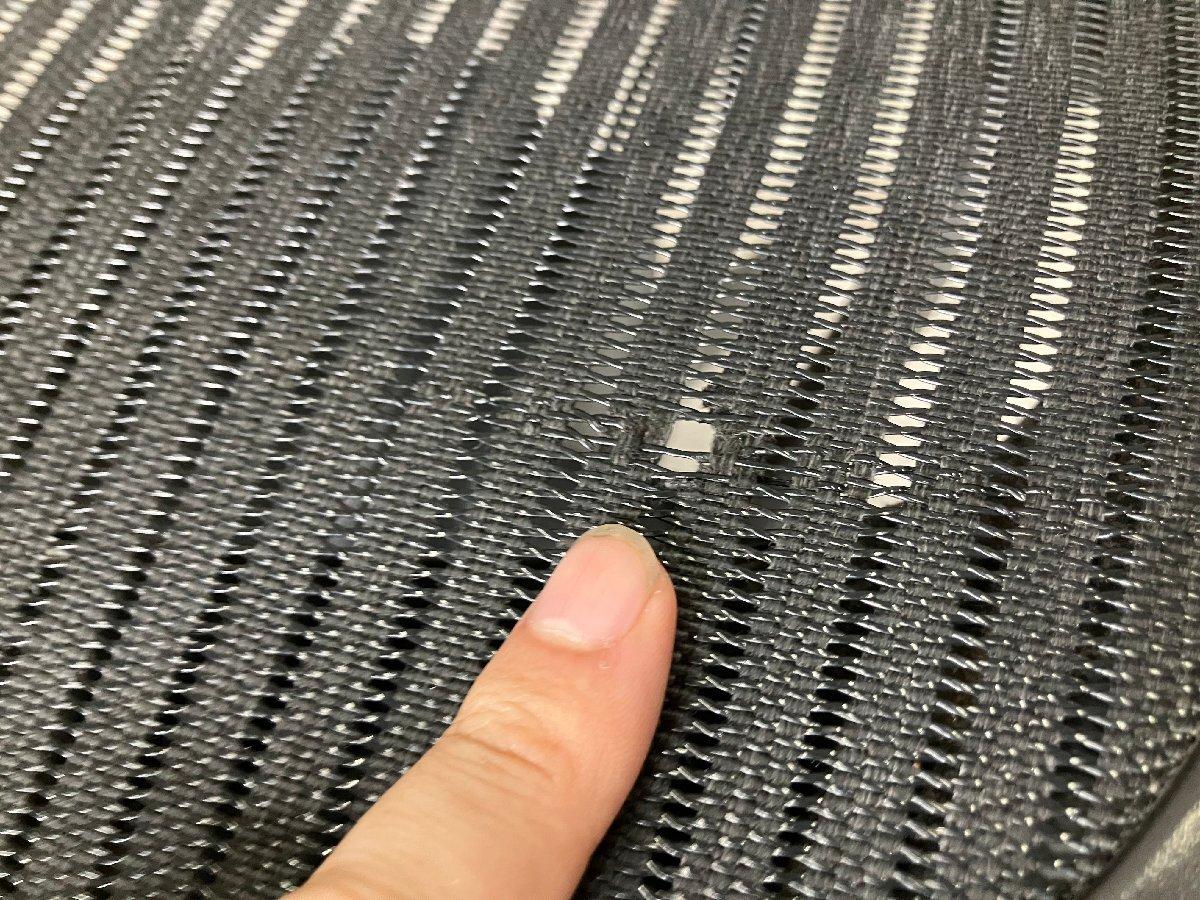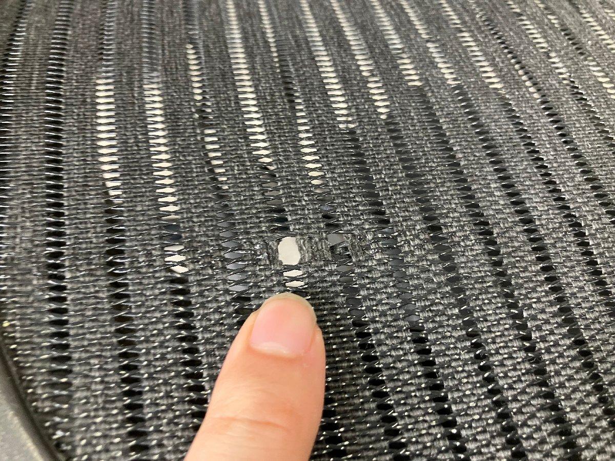 座面のメッシュにほつれ・破れがあります。(写真8~10枚目参照)