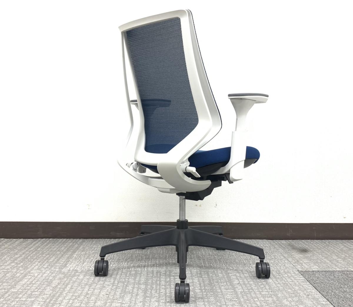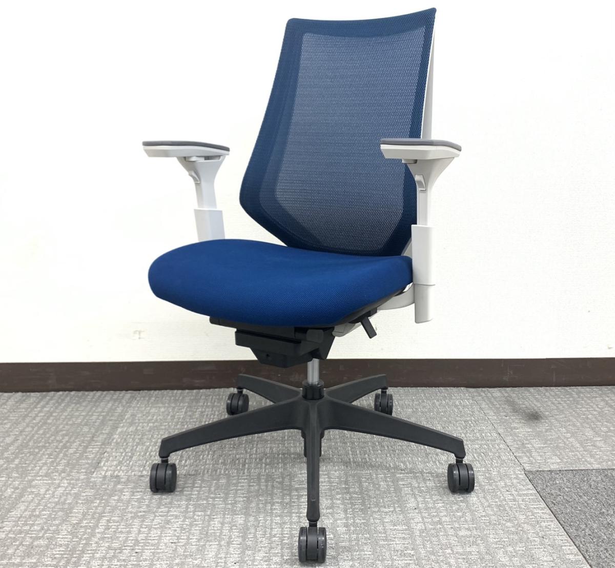 ■KOKUYO/コクヨ ■デュオラ(Duora)チェア ■プルシアンブルー×ホワイトシェル×ブラック脚 ■肘付き/可動肘 ■ハイバック ■背面/メッシュ 座面/布 ■コートハンガー付き ■オススメ/人気/定番商品 【弊社使用欄:A01040309 K】【ID】