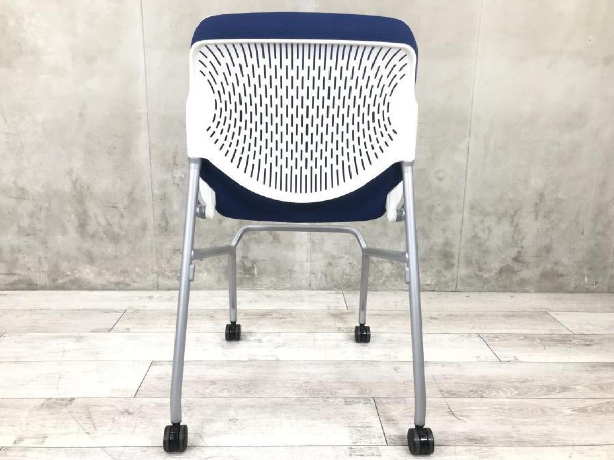 【使わない時は重ねて収納!さまざまな場面で活躍するミーティングチェア!】■オカムラ(okamura) ルナ(RUNA)チェア ネスティングチェア ミーティングチェア ■背面ヌードタイプ ■座面:ブルー × 背面:ホワイト- 東大阪店