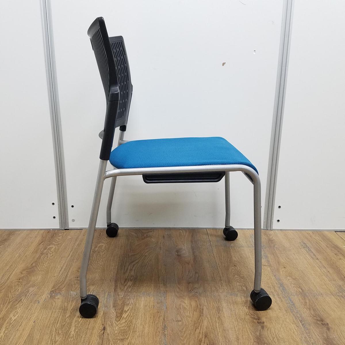 【重ねて収納可能!さわやかなカラーとシンプルデザイン!】■オカムラ製 レーテ スタッキングチェア ミーティングチェア ■キャスター付き ■座面ブルー×背面ホワイト【2412】弊社使用欄【A00990049】