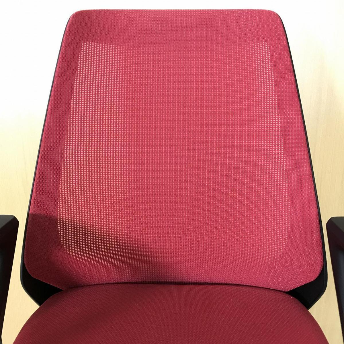 【座りやすくてコンパクト!肩回りが動かしやすい背面メッシュの人気チェア!】■イトーキ(ITOKI) ノナ(nona)チェア ハイバック 肘付き ■サークル肘 ■背面メッシュ ■ラズベリーレッド × ブラックシェル- つくば店