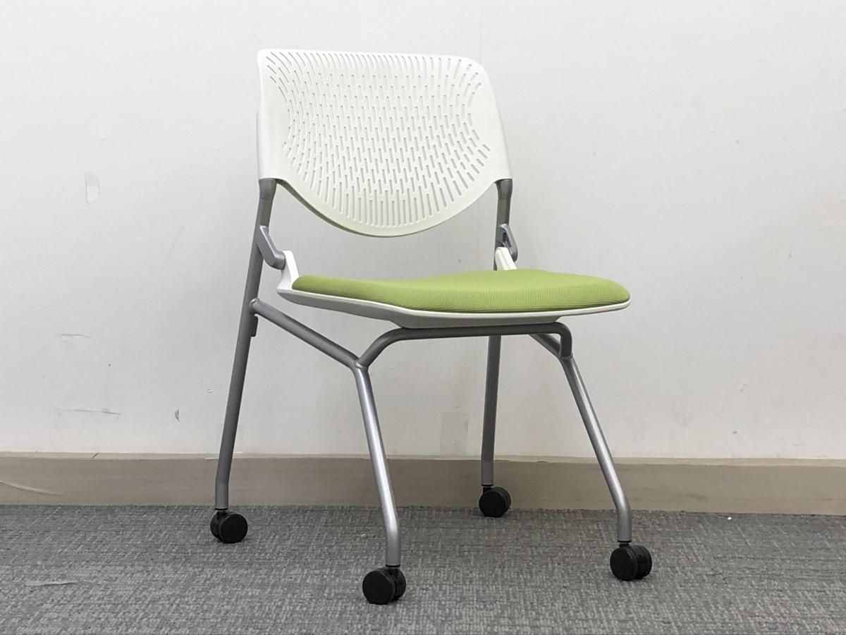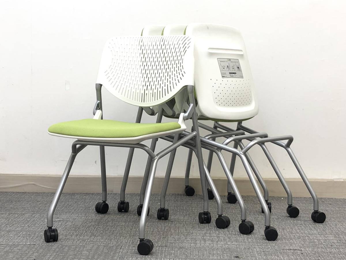【4脚1セット】流行のライトグリーンにそそられる!収納性抜群のネスティングチェア!/オススメ(おすすめ) /人気商品【弊社使用欄:-----】■オカムラ/ルナ- 池袋店