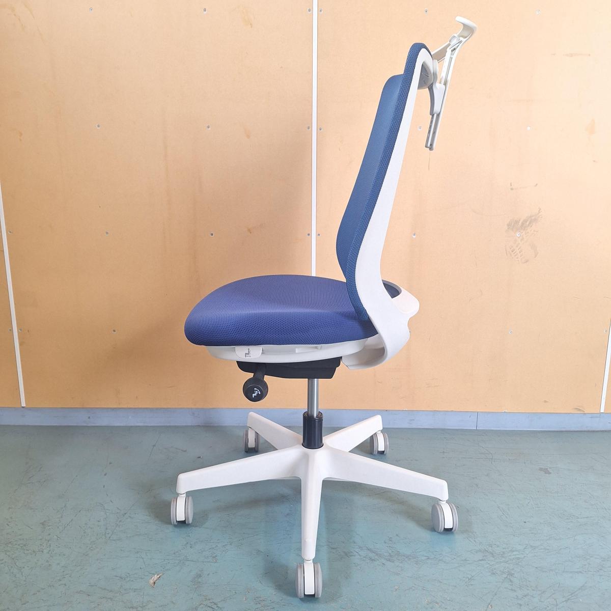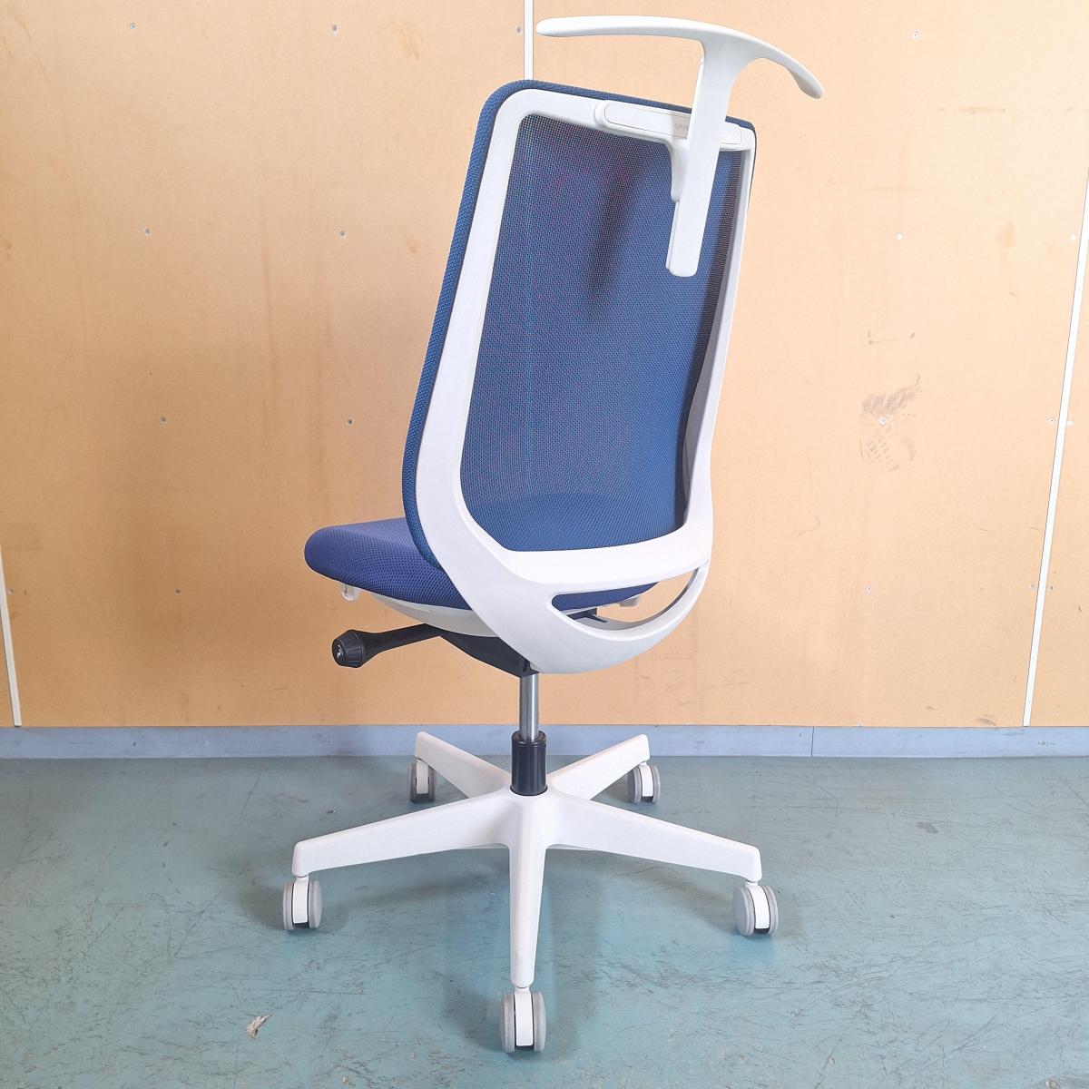 ★【K12】【T10】【K8】【商品入替のため、残り7脚限り】【23年製】オカムラ製 ポータム ブルー ホワイトフレーム 背面メッシュ コートハンガー 座面前後調整 肘無しハイバックチェア!!