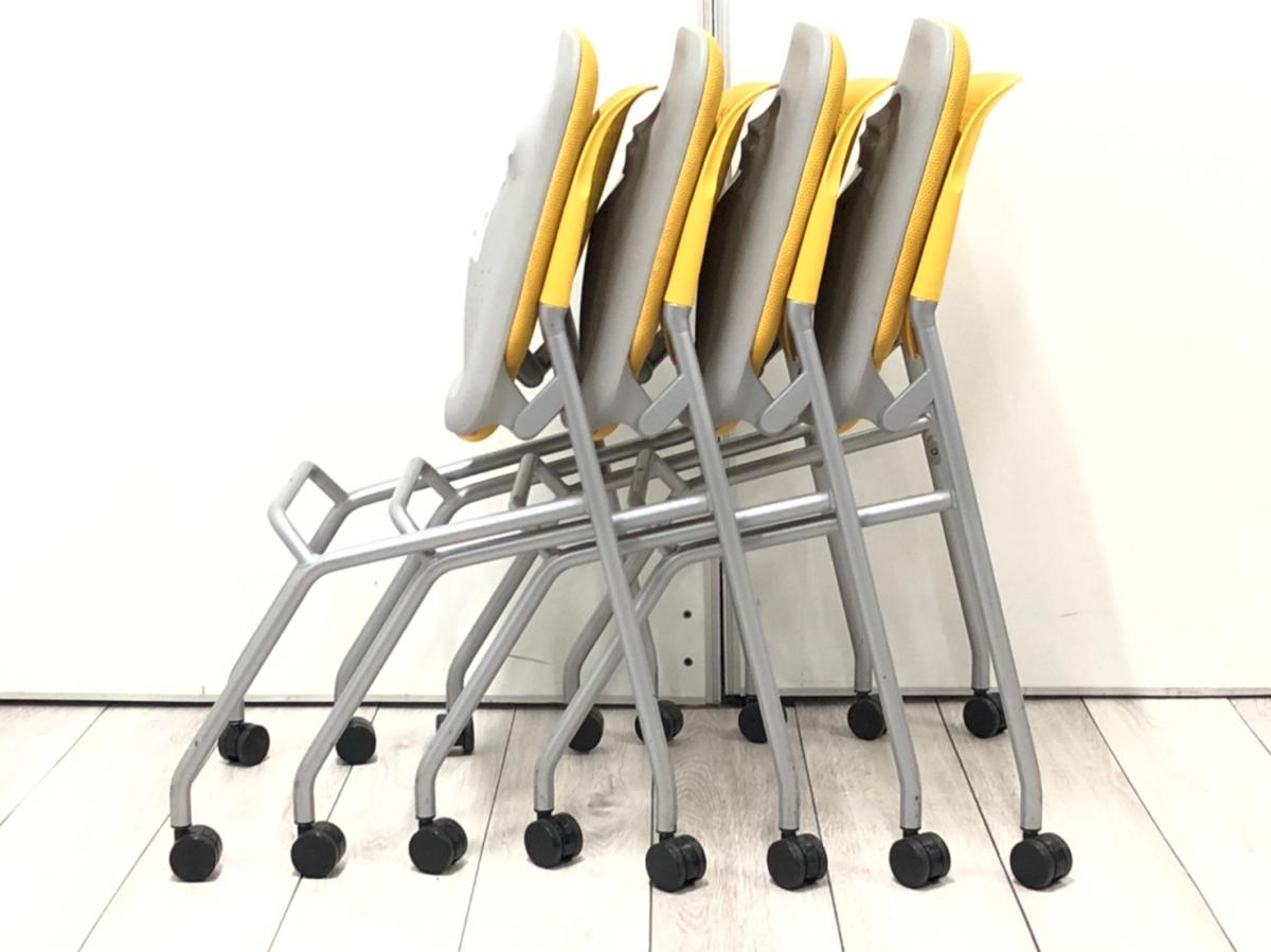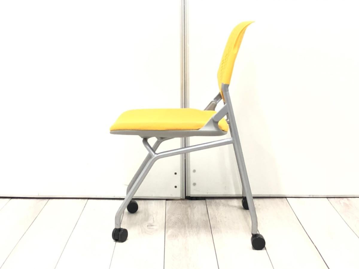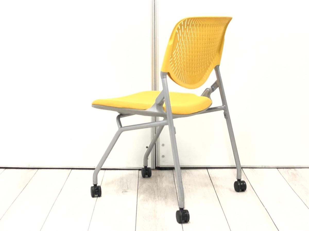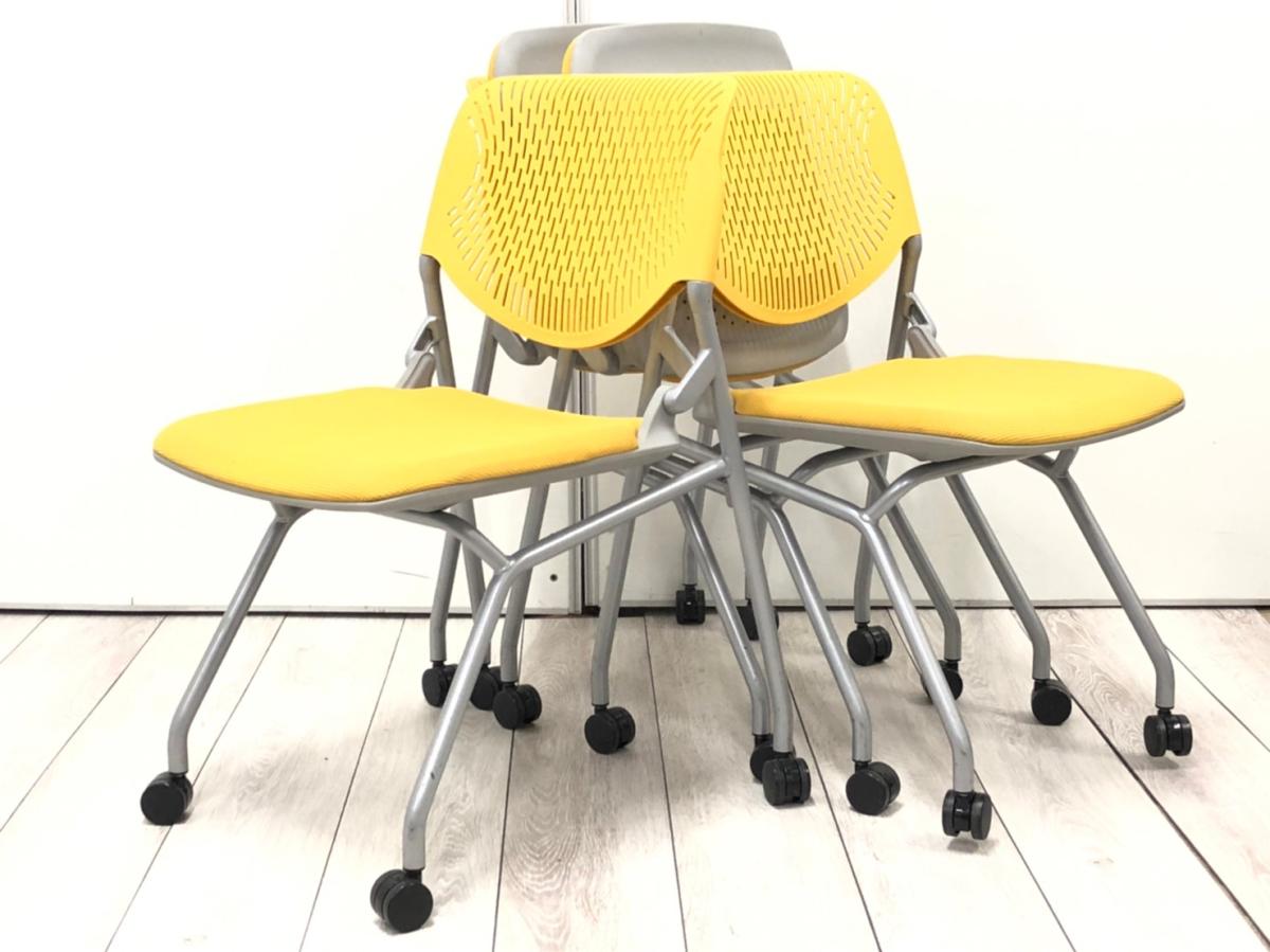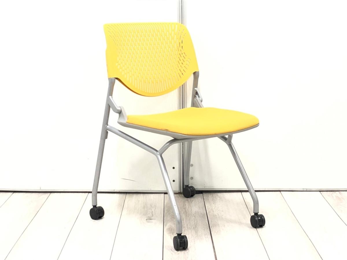 【関東倉庫在庫品】【シンプルなデザインで使いやすいミーティングチェア!】【在庫入替セール品】■オカムラ製 ルナ ネスティングチェア ■イエロー【弊社使用欄:A01021721】【ECBMC】