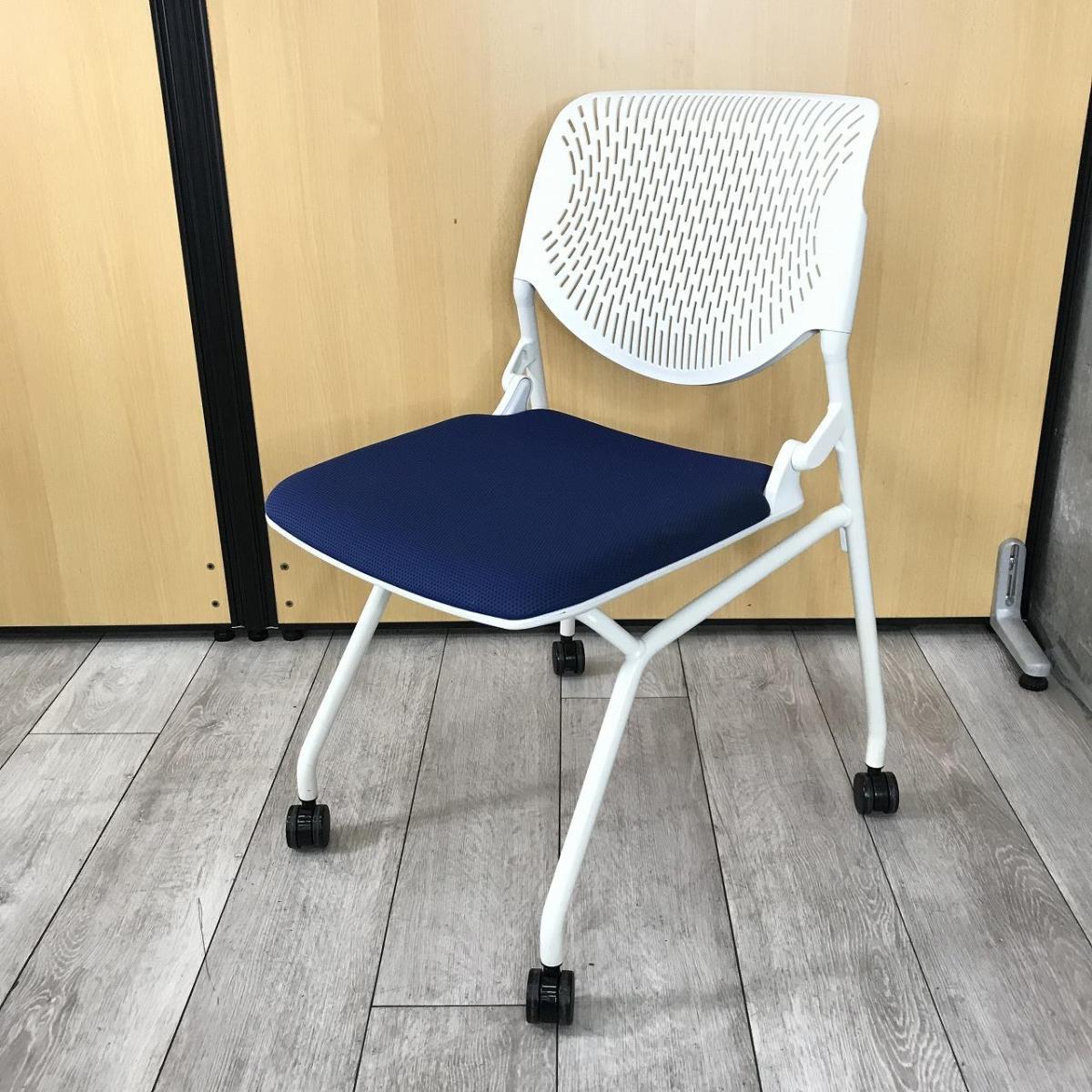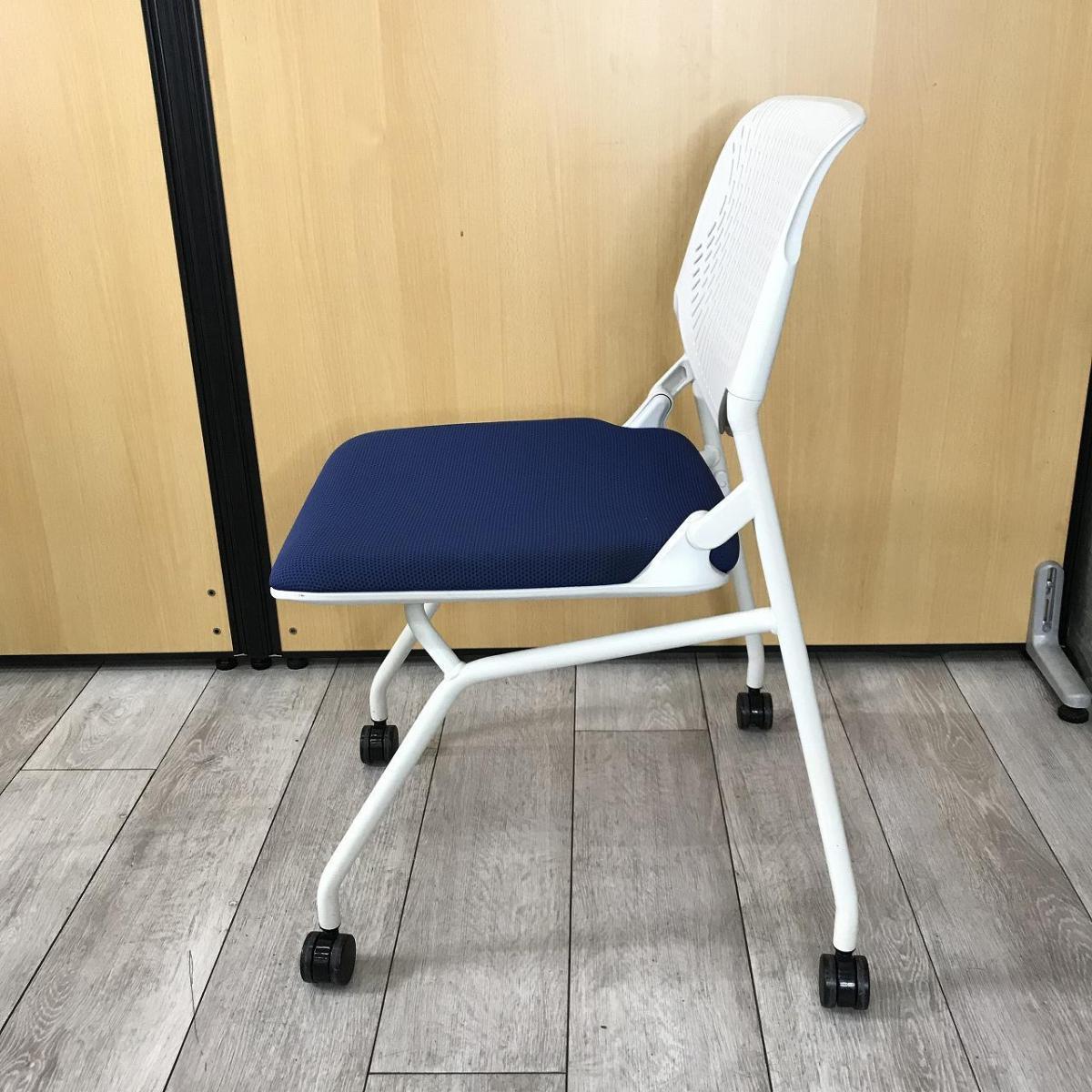 【スタイリッシュなデザインで座りやすい!】■オカムラ(okamura)製 ルナ(Runa)チェア ネスティングチェア 会議用 キャスター付 ■背面樹脂メッシュ:ホワイト/座面:ネイビーブルー 【フレキシブルに使える!便利なネスティングチェア!】〈岐阜・愛知・三重・静岡・福井〉- 岐阜店