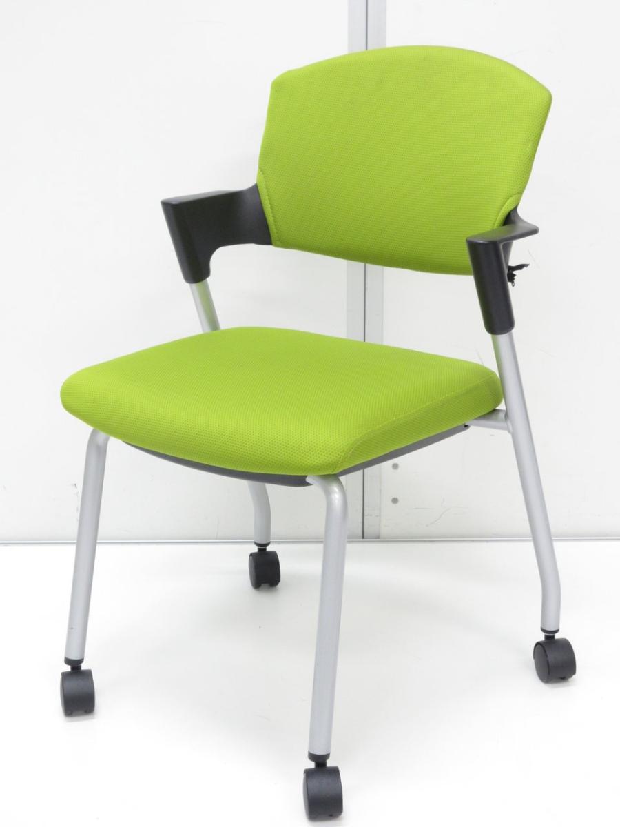 【シンプルスマートなスタッキングチェア!】■コクヨ(KOKUYO) プロッティ(Protty)チェア スタッキングチェア ミーティングチェア ■肘付き キャスター付き ■グリーン- つくば店
