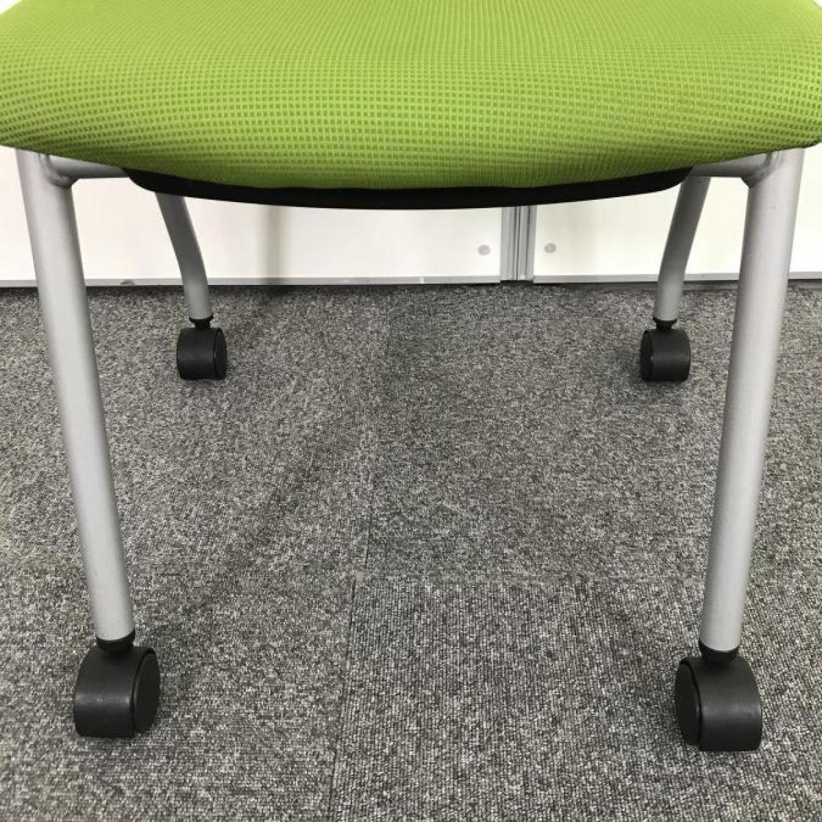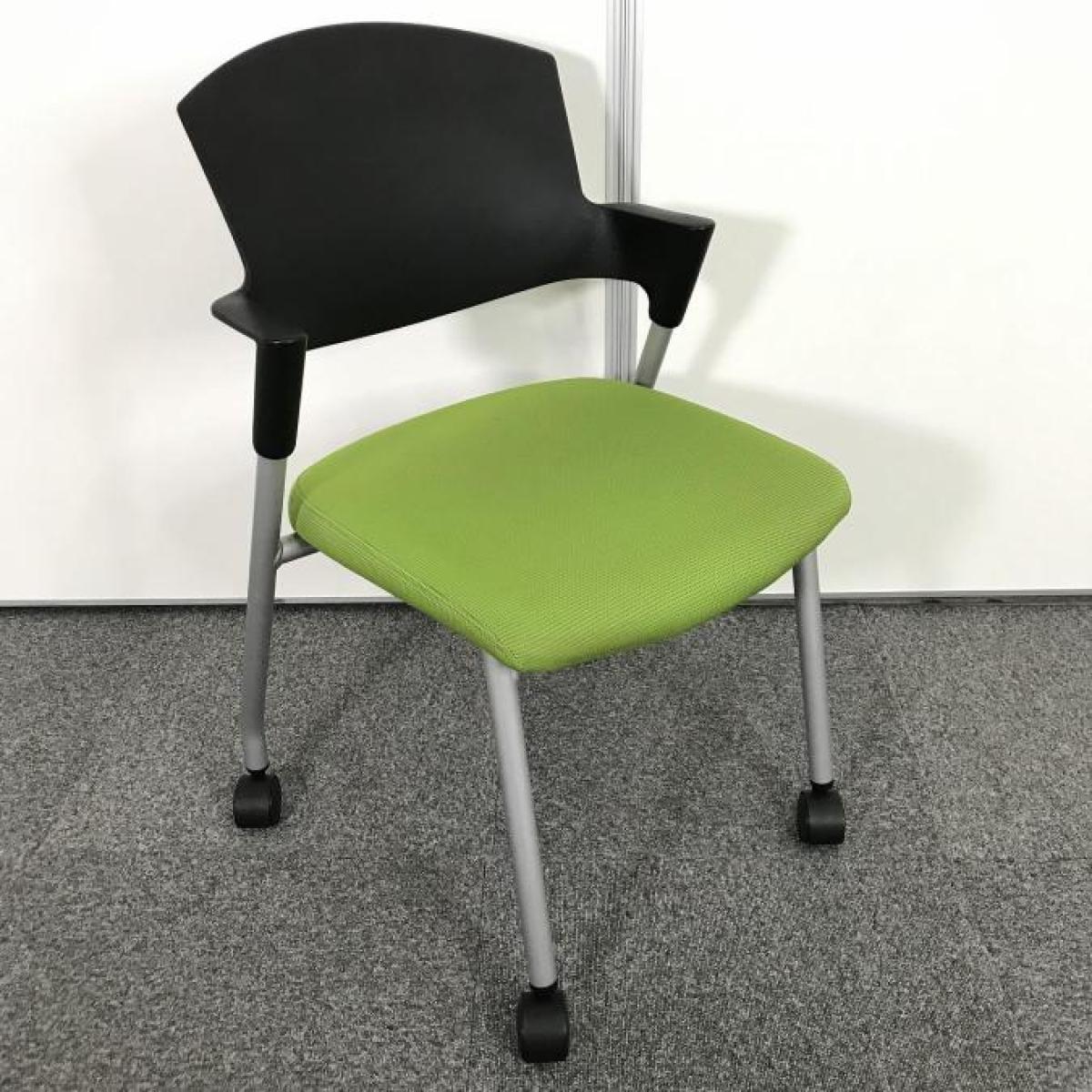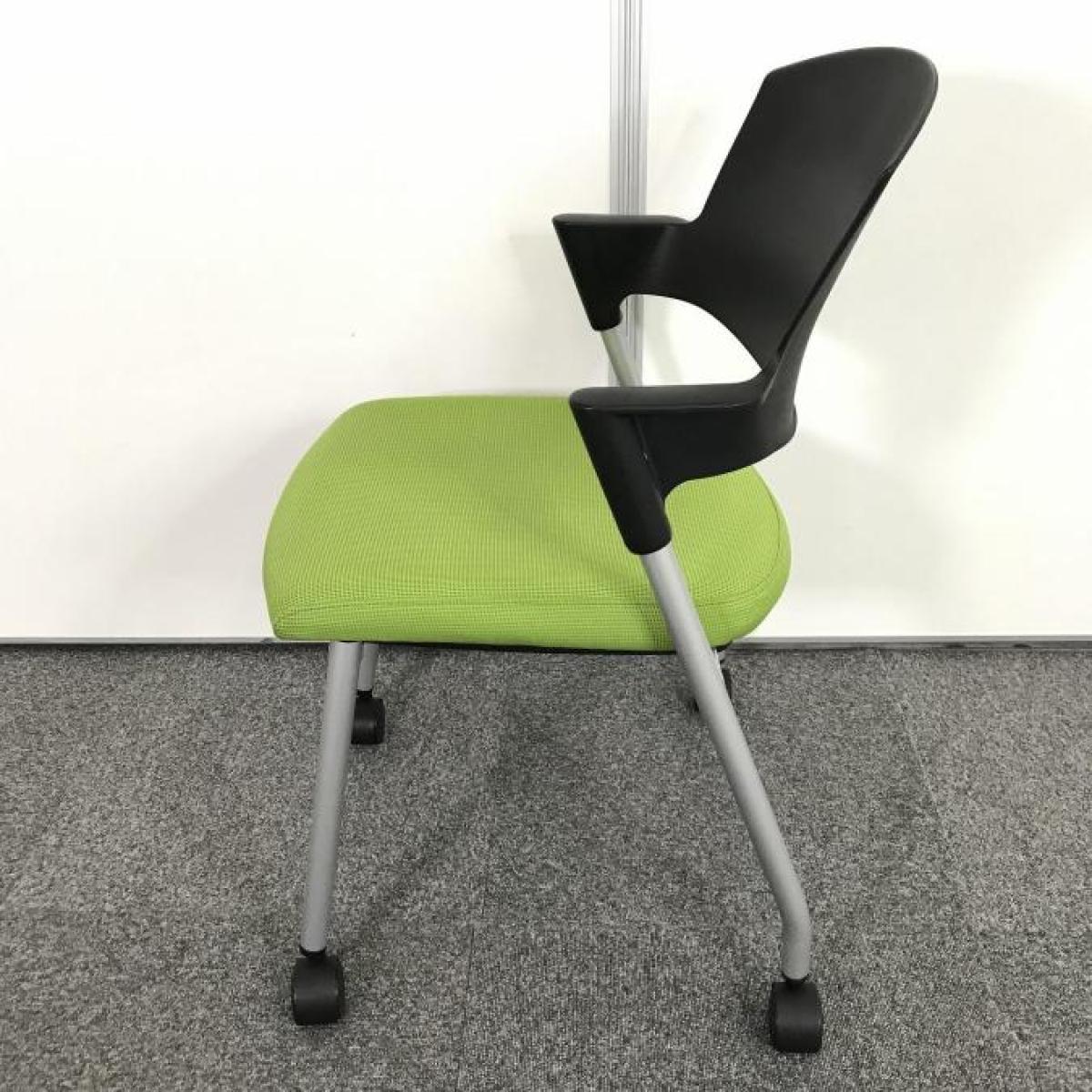【シンプルスマートなスタッキングチェア!】■コクヨ(KOKUYO) プロッティ(Protty)チェア スタッキングチェア ミーティングチェア ■肘付き キャスター付き ■グリーン ■背面ヌード仕様- つくば店