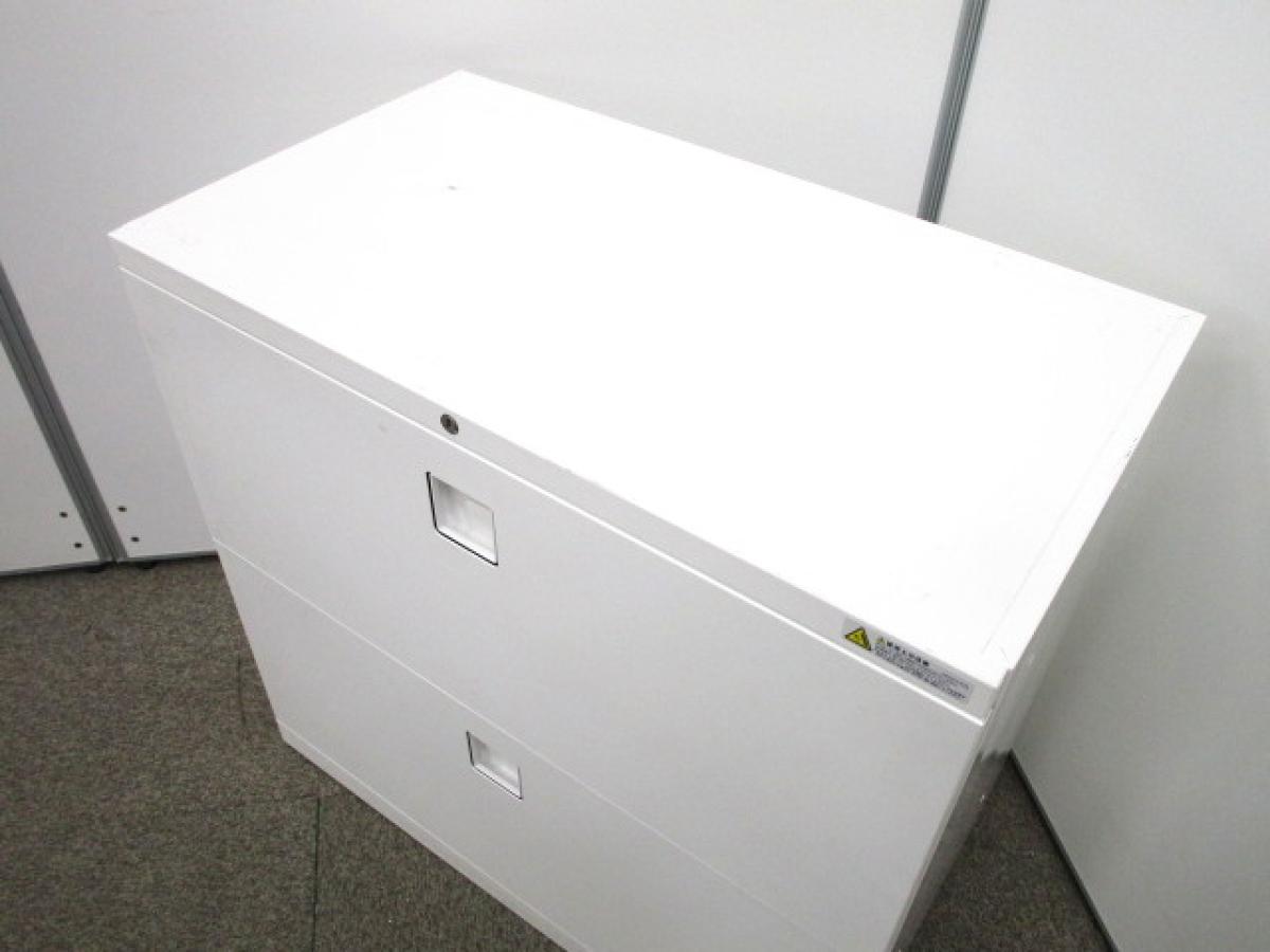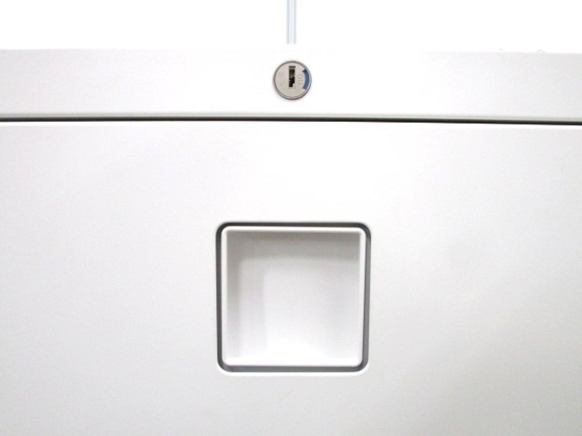 オカムラ レクトライン 3段ラテラル書庫 ホワイト天板 シリンダー錠 鍵付き ※取っ手部分に若干日焼けあり