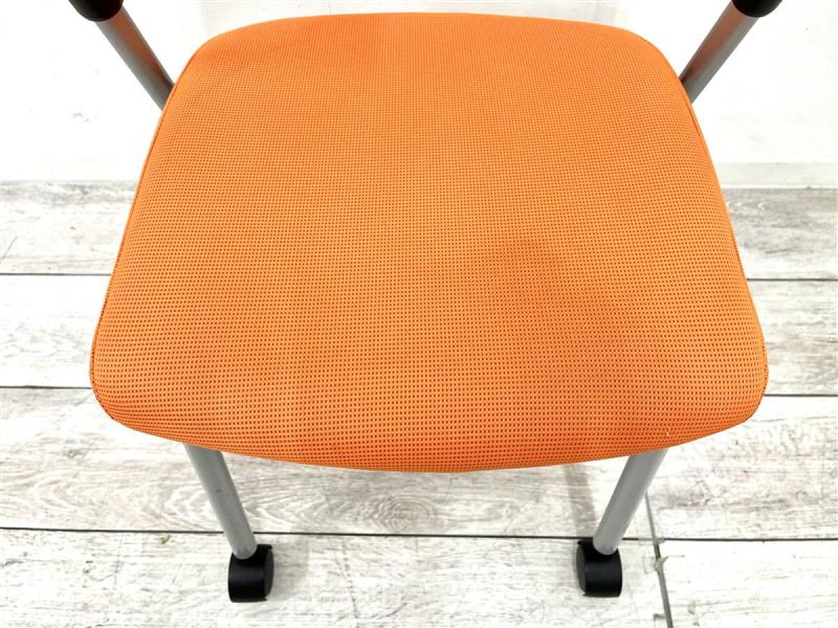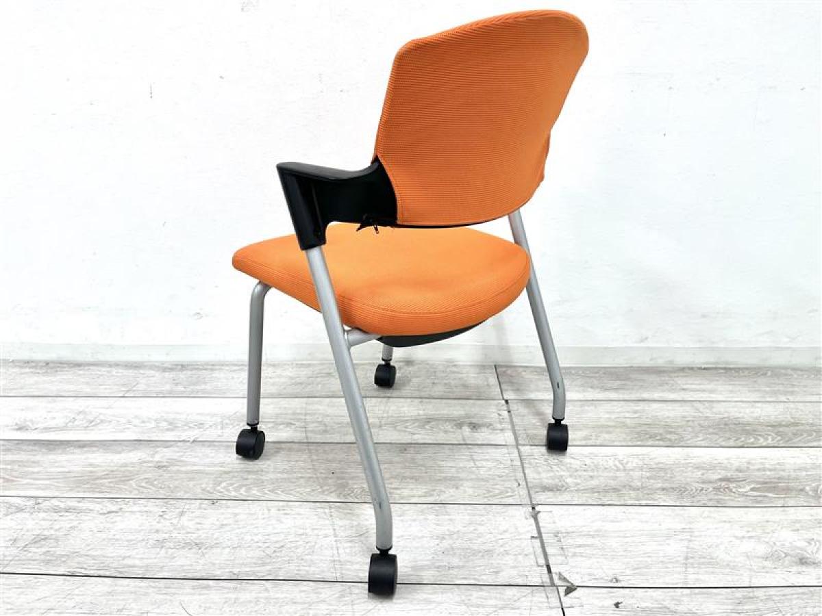 【シンプルスマートなスタッキングチェア!】■コクヨ(KOKUYO) プロッティ(Protty)チェア スタッキングチェア ミーティングチェア ■肘付き キャスター付き ■オレンジ【2505】弊社使用欄【A01018053】