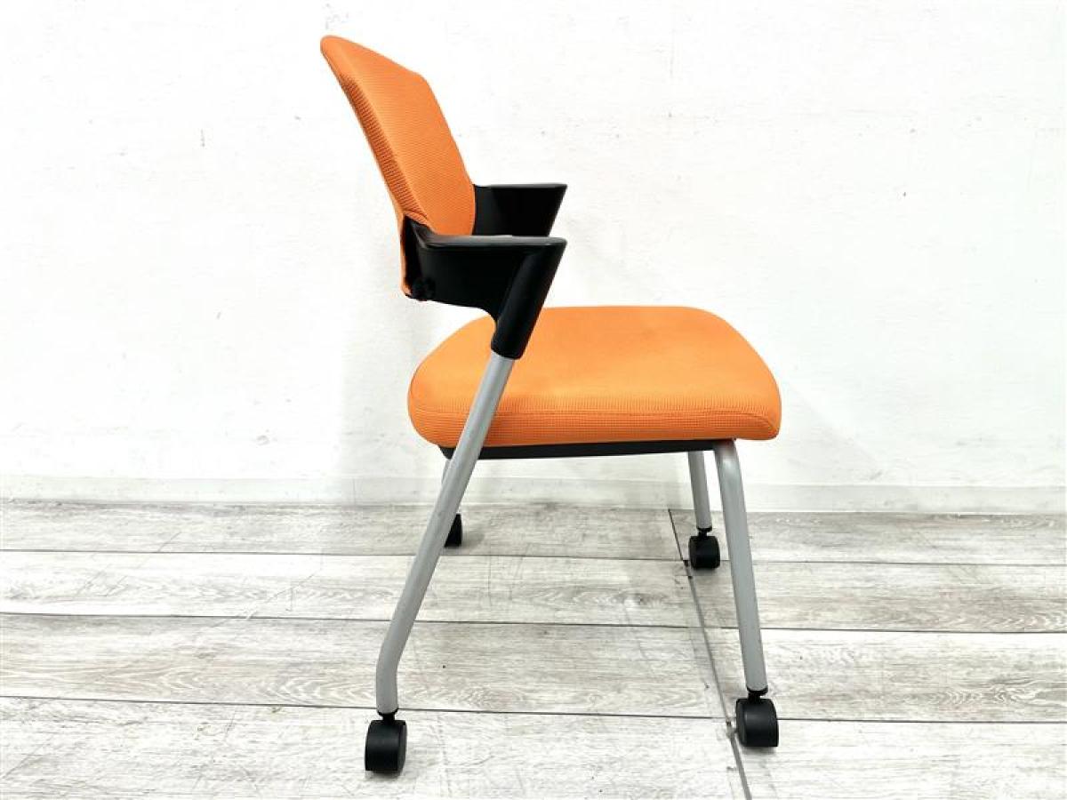 【定価約6万円】【シンプルスマートなスタッキングチェア!分厚いクッションで長時間でも快適な座り心地!】■コクヨ(KOKUYO)製 プロッティ(Protty) スタッキングチェア 肘付ミーティングチェア ■固定肘 ■キャスター付 ■オレンジ- 仙台店