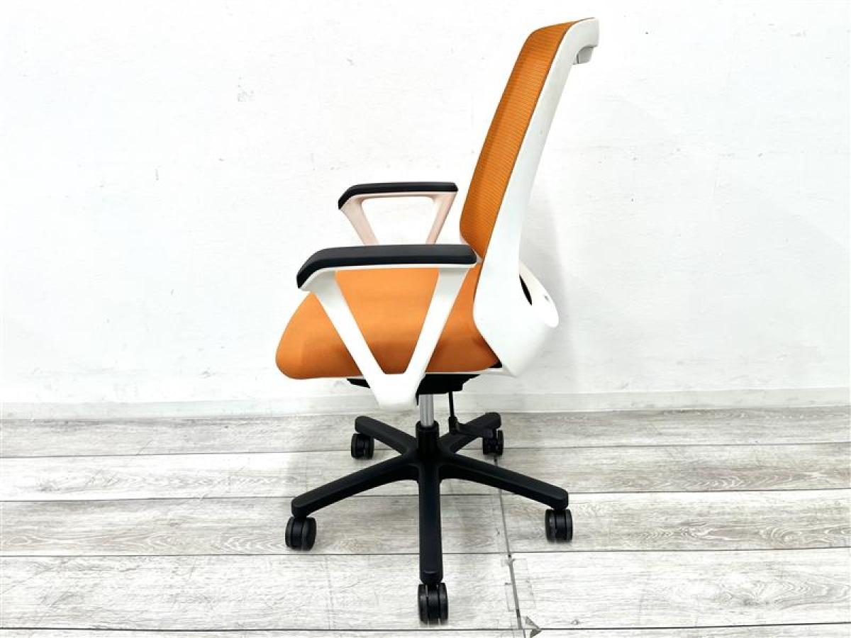 【定価約10万円】【理想的な作業姿勢で快適な座り心地!】■イトーキ(ITOKI)製 ノナ(nona)チェア 肘付ハイバック 背面メッシュ ■サークル肘 ■アンバーオレンジ×ホワイトシェル 【デスクに納まりの良いコンパクト設計】- 仙台店