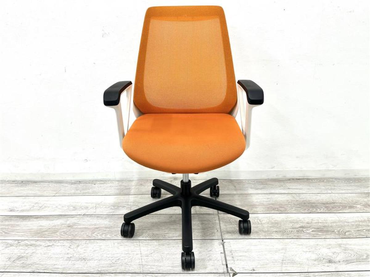 入替セール品につきお値下げ!【フレッシュなオフィスになること間違いなし!人気のメッシュチェア】■イトーキ(ITOKI) ノナ(nona)チェア 背面メッシュ ■サークル肘 ■アンバーオレンジ 【デスクに納まりの良いコンパクト設計】