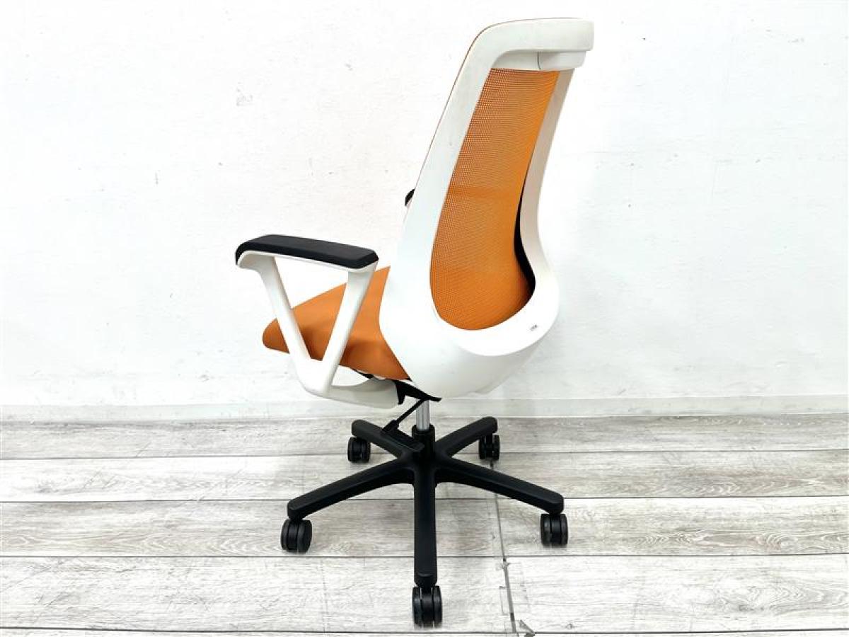 【定価約10万円】【理想的な作業姿勢で快適な座り心地!】■イトーキ(ITOKI)製 ノナ(nona)チェア 肘付ハイバック 背面メッシュ ■サークル肘 ■アンバーオレンジ×ホワイトシェル 【デスクに納まりの良いコンパクト設計】サーキュラーバリューCO2削減量の算出について