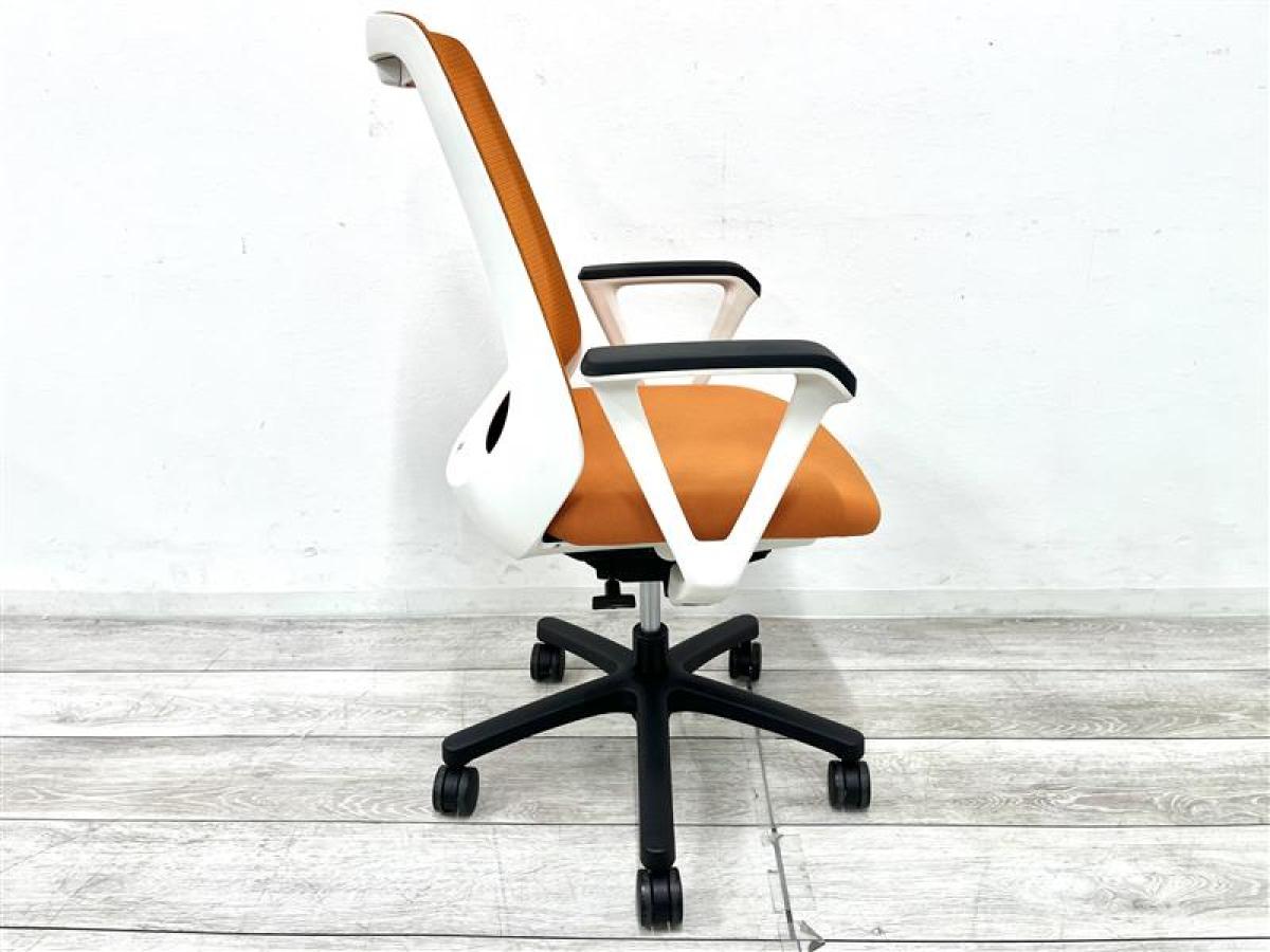 【座りやすくてコンパクト!肩回りが動かしやすい背面メッシュの人気チェア!】■イトーキ(ITOKI) ノナ(nona)チェア ハイバック 肘付き ■サークル肘 ■背面メッシュ ■アンバーオレンジ × ホワイトシェル
