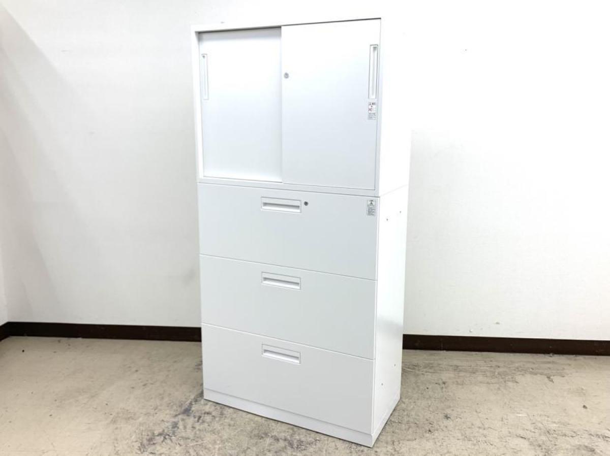 【2台限定!】鍵付きで立派なオフィスへ!コクヨ(KOKUYO)エディアシリーズ 書庫セット(引き違い+3段ラテラル) ■色:ホワイト 高さ1800㎜【女性に優しい低めサイズ!】- 大阪・堺店