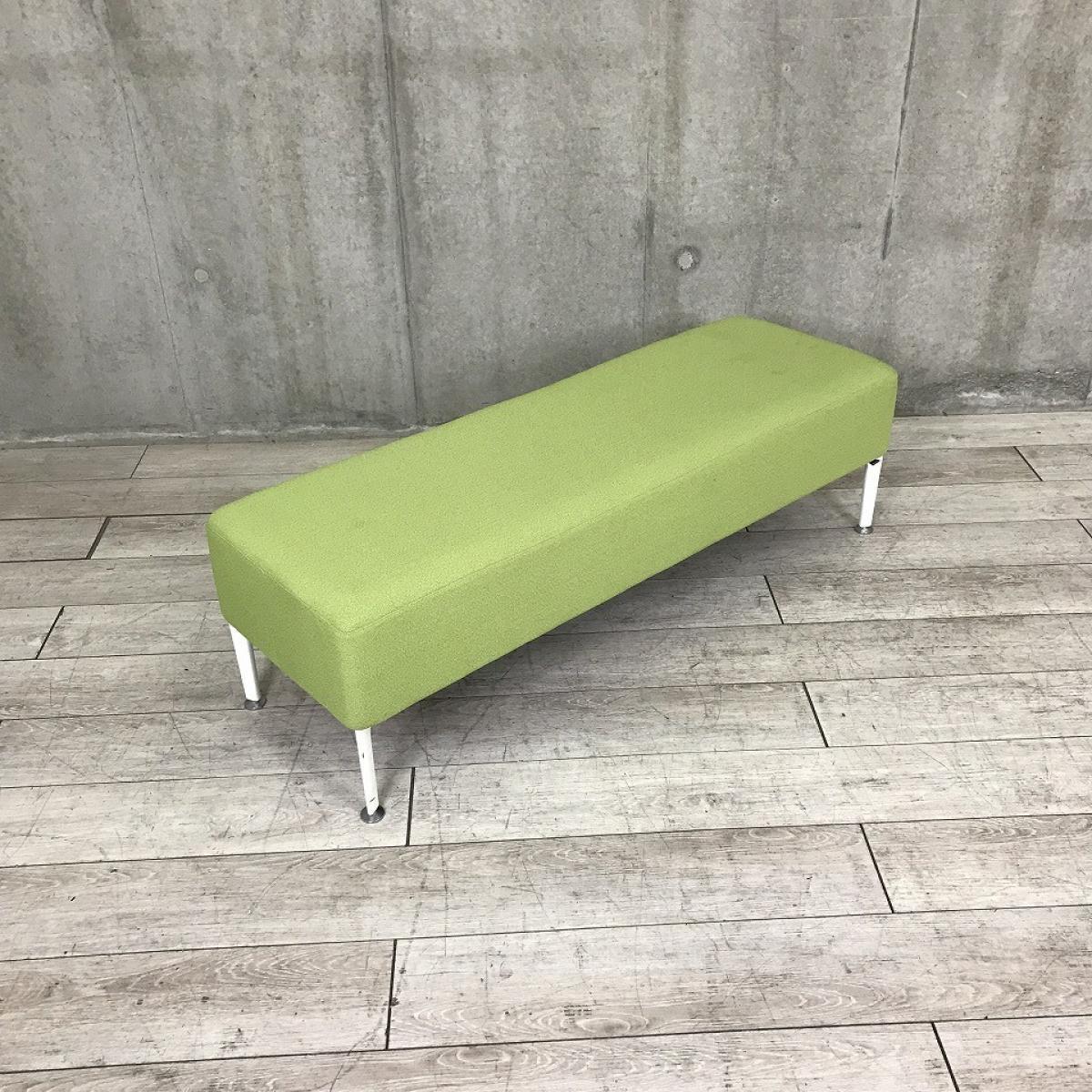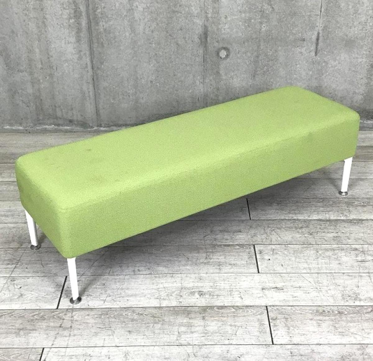 【いま人気のリビングライクなデザイン!】■オカムラ アルトリビングシリーズ 2人掛けベンチ W1400mm ■張地:グリーン / 脚:ホワイト【Okamura Alt Living】【スツール】【ABW】- 川崎店