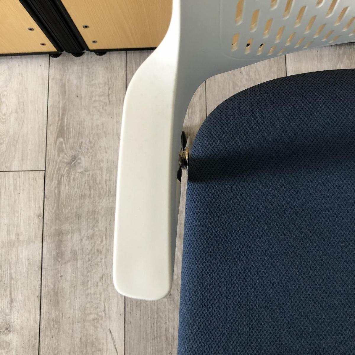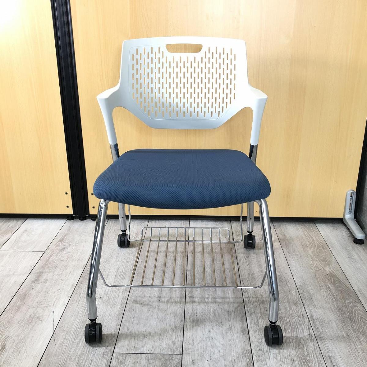 【荷物棚付で便利!アクティブなコミュニケーションをサポートするミーティングチェア!】■オカムラ(okamura)製 パート(Part)シリーズ ミーティングチェア ネスティングチェア 肘付 キャスター付 ■背面樹脂メッシュ:ホワイト/座面:ブルー【弊社使用欄:A00999283】在庫がある店舗一覧