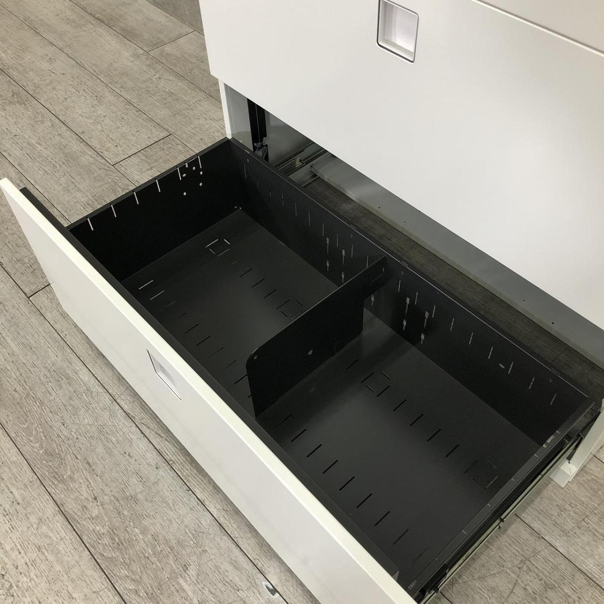 【オフィスの必需品!大容量の三段キャビネット!】■オカムラ(okamura)製 レクトラインシリーズ 3段ラテラル ローキャビネット ■ベース付 ■シリンダー錠 ■ホワイト 【弊社使用欄:A01037187】