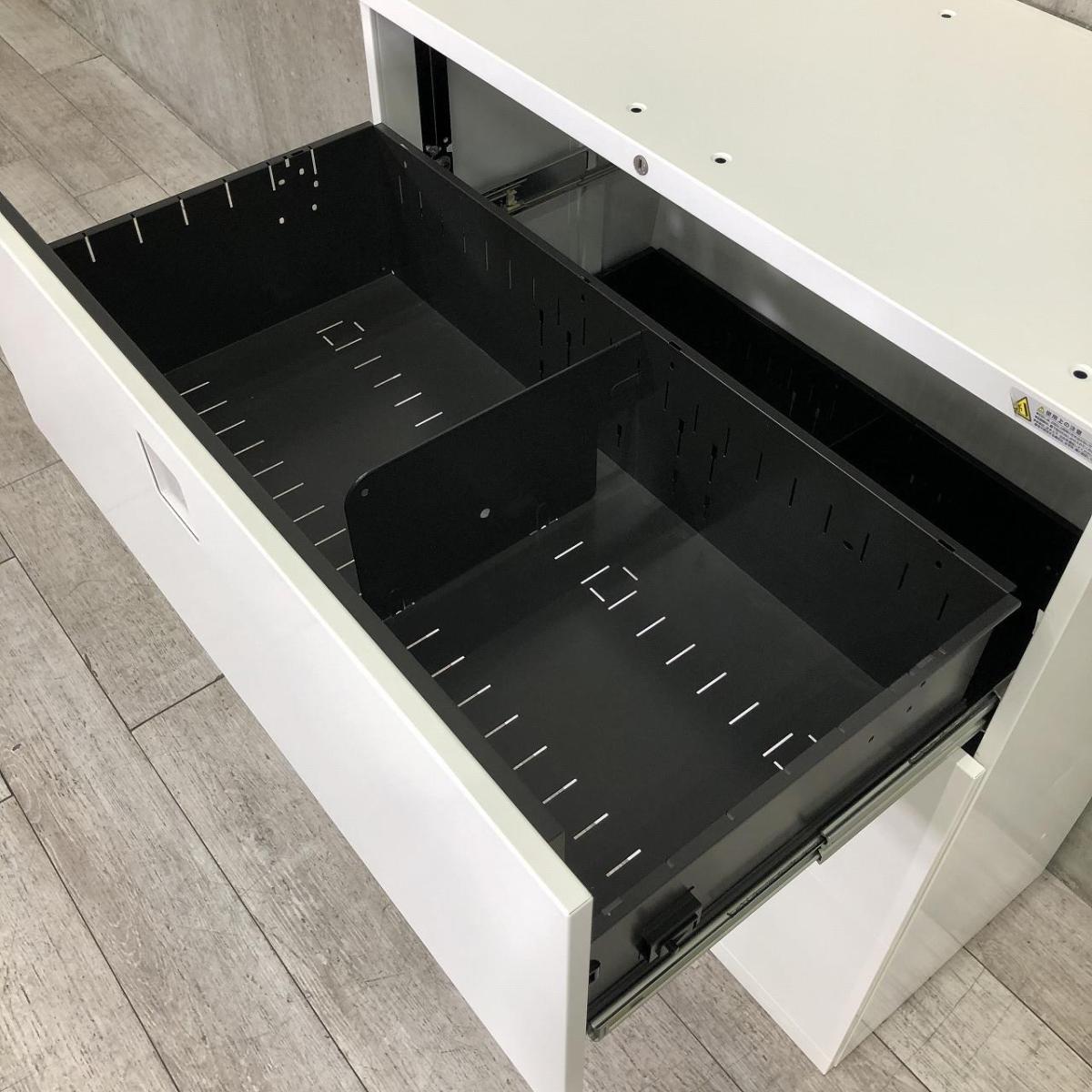【オフィスの必需品!大容量の三段キャビネット!】■オカムラ(okamura)製 レクトラインシリーズ 3段ラテラル ローキャビネット ■天板/ベース付 ■シリンダー錠 ■ホワイト 【弊社使用欄:A01037187】